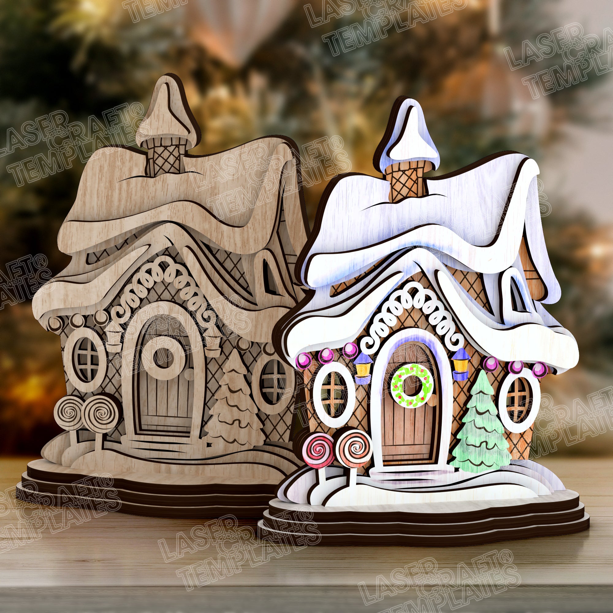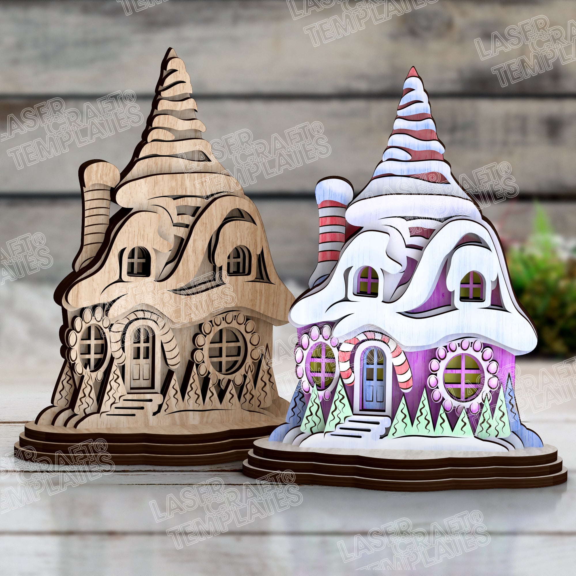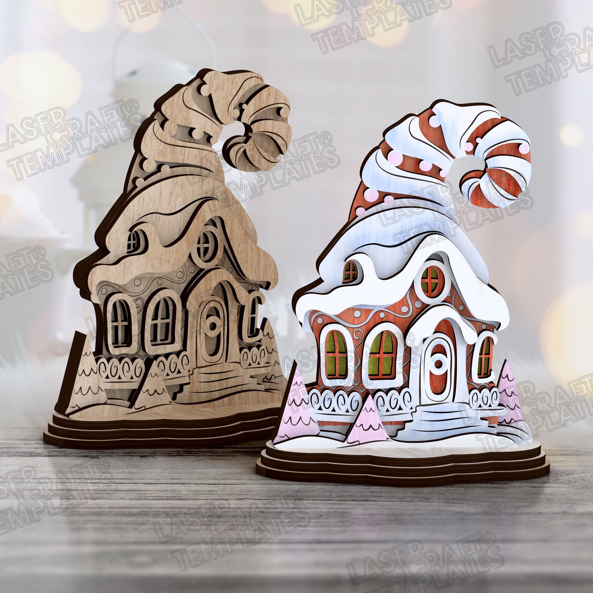 🔹 File in formato SVG tagliato al laser della casa delle caramelle natalizie da 5 pacchetti
