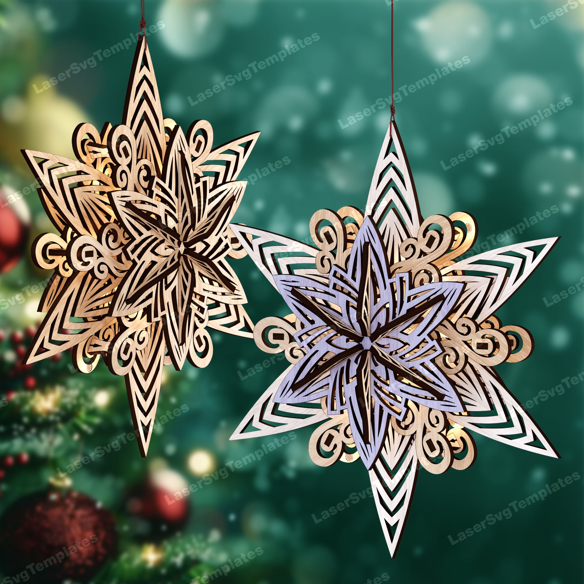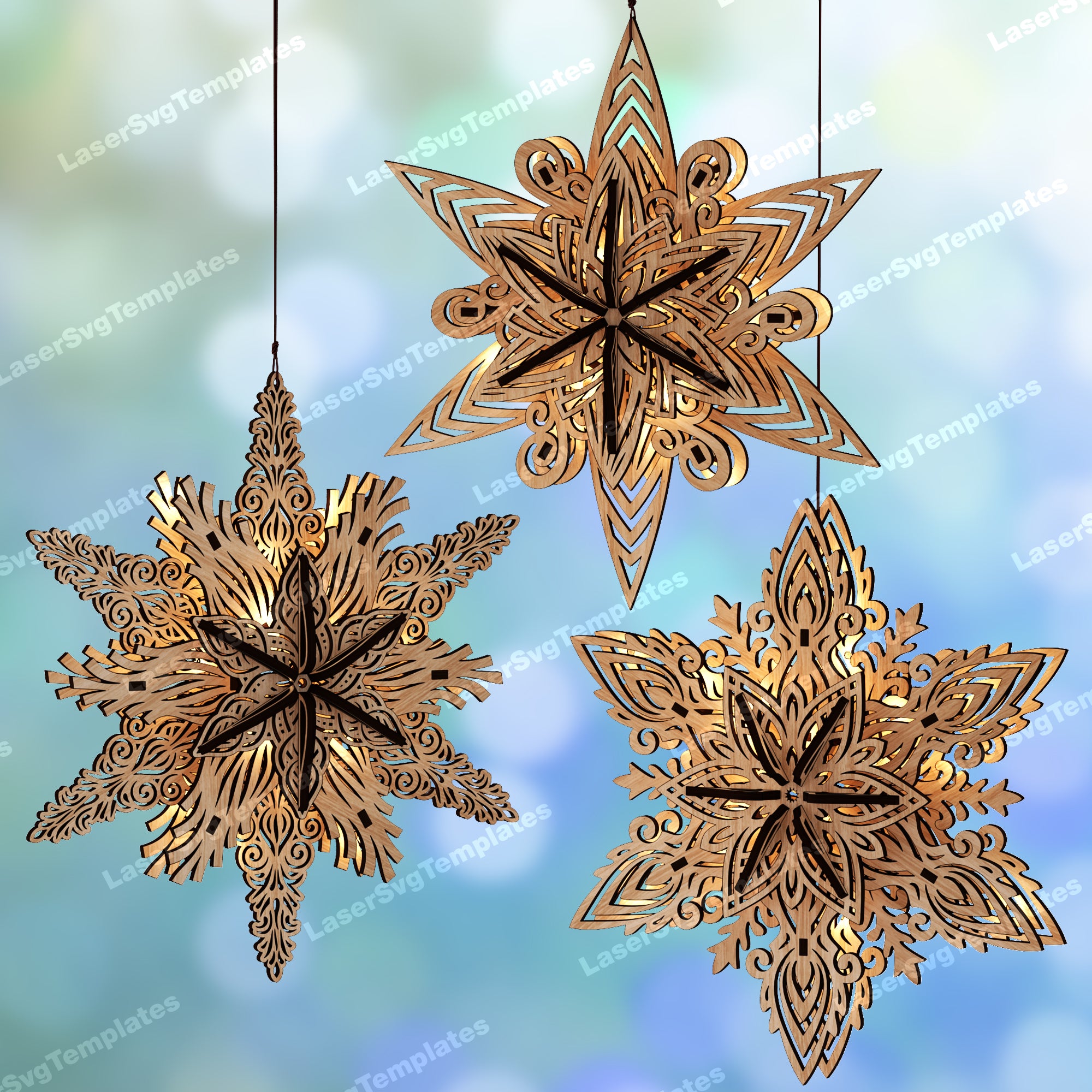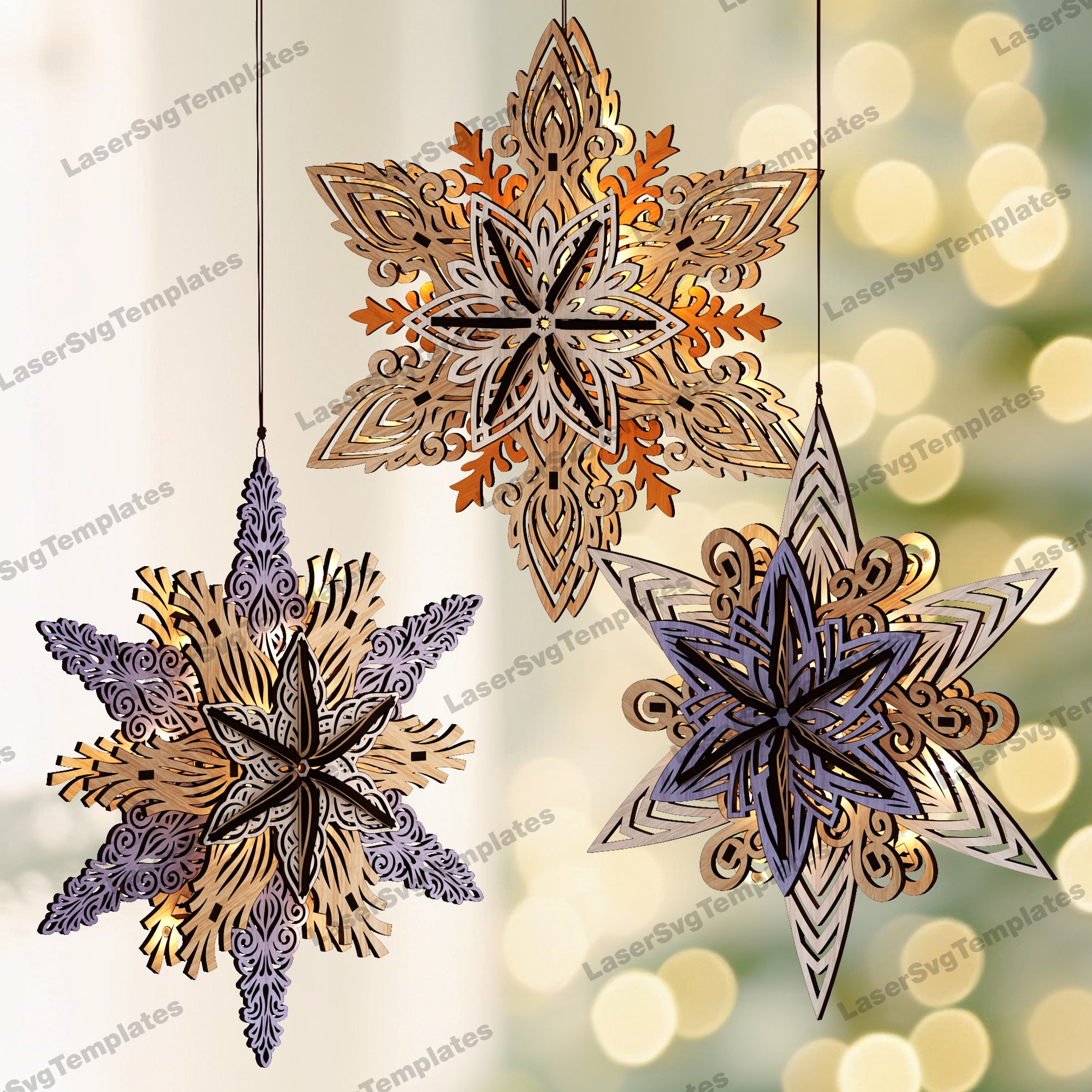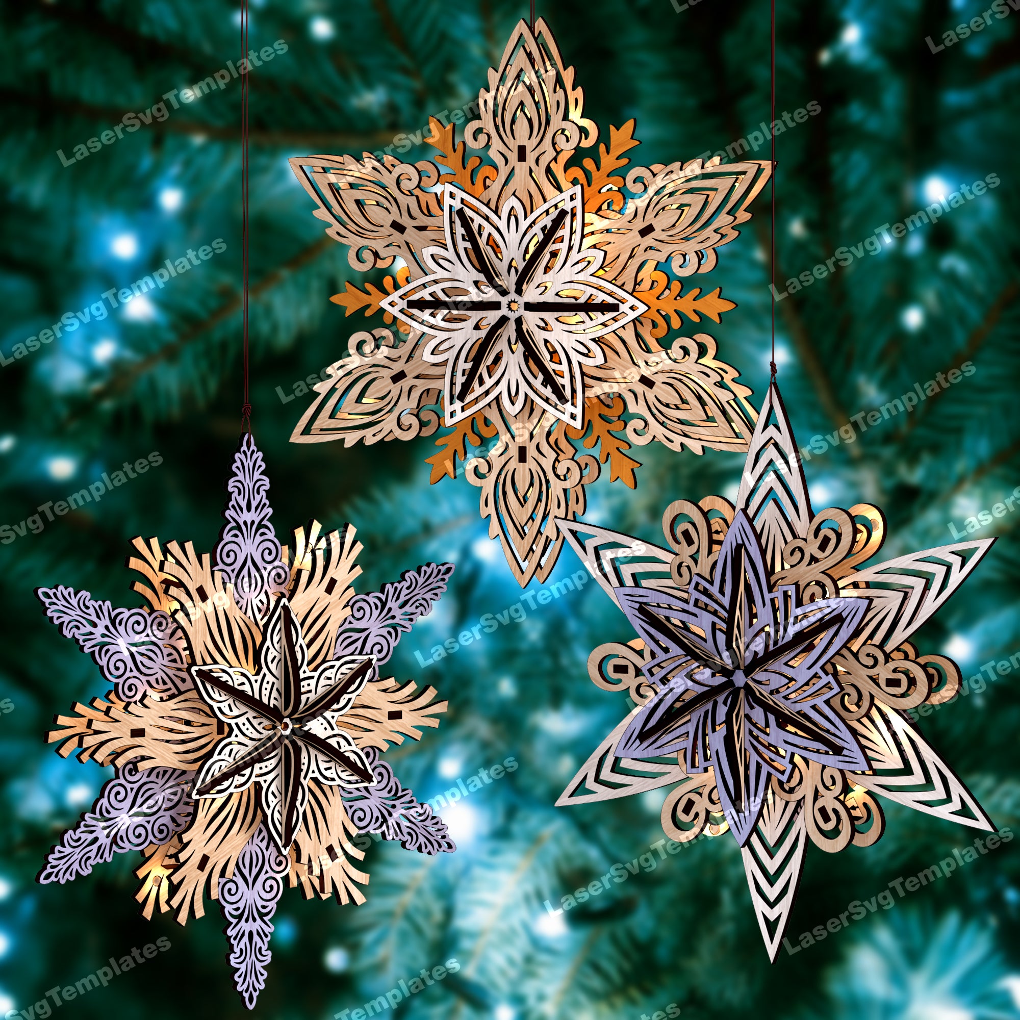 Ornamenti di stelle di Natale 3 bundle di file in formato SVG tagliati al laser