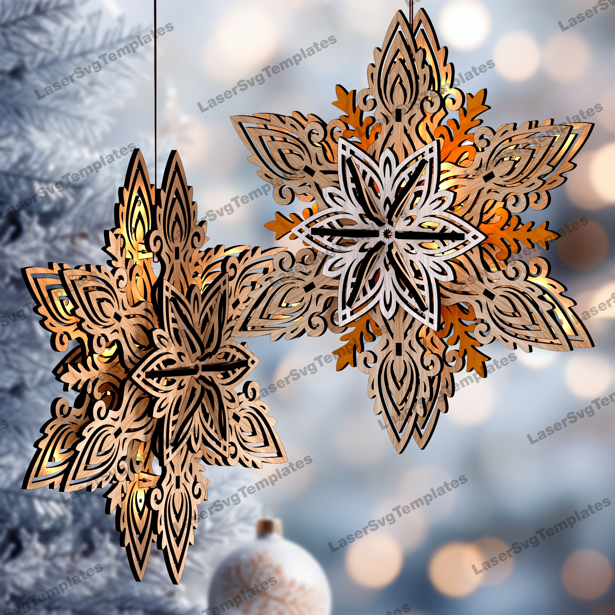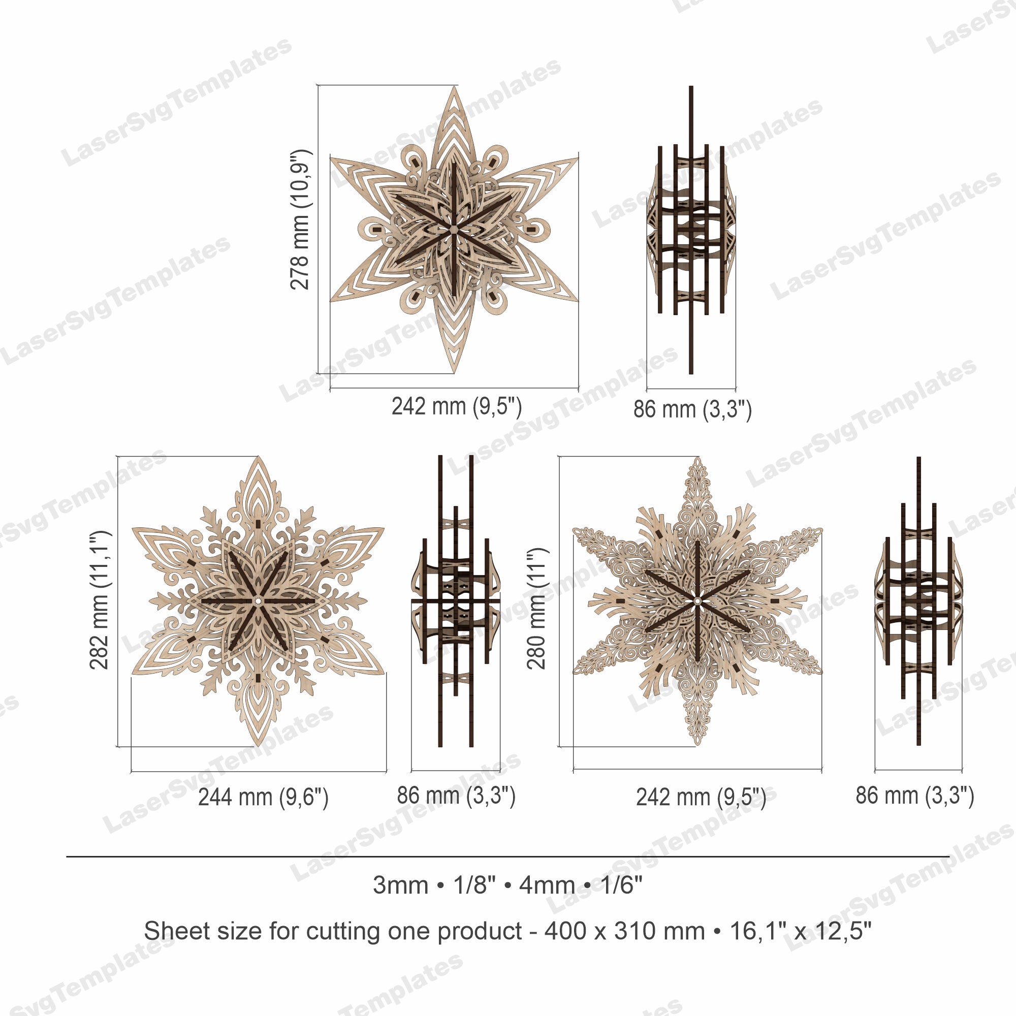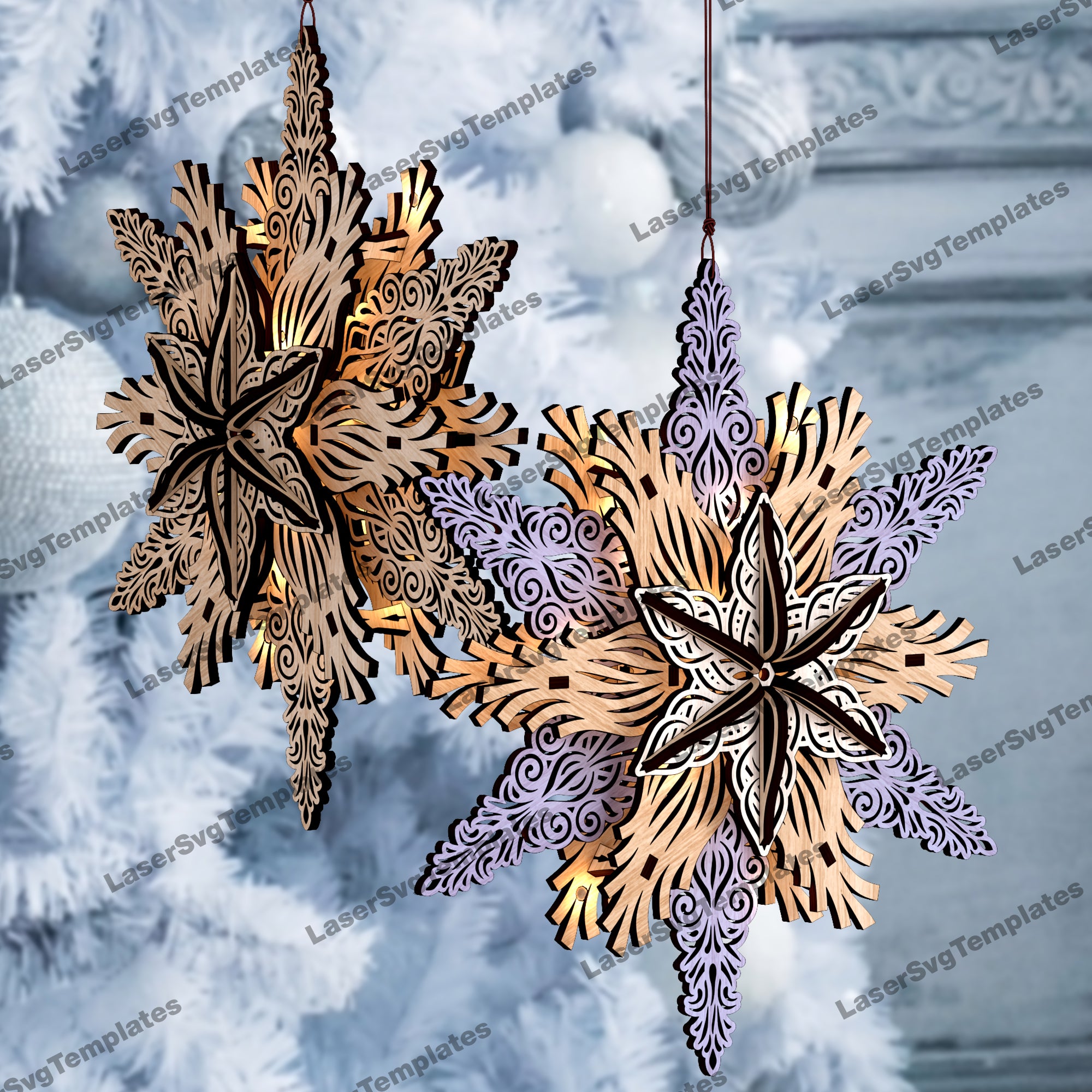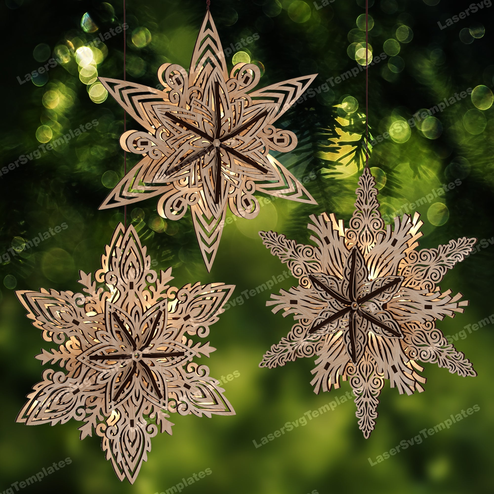 Ornamenti di stelle di Natale 3 bundle di file in formato SVG tagliati al laser