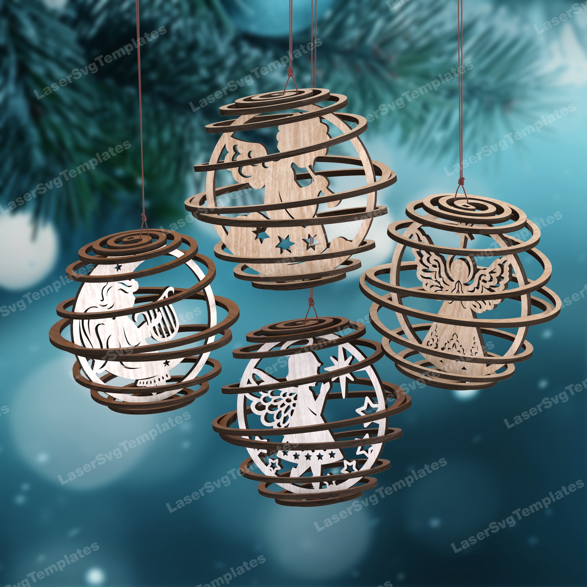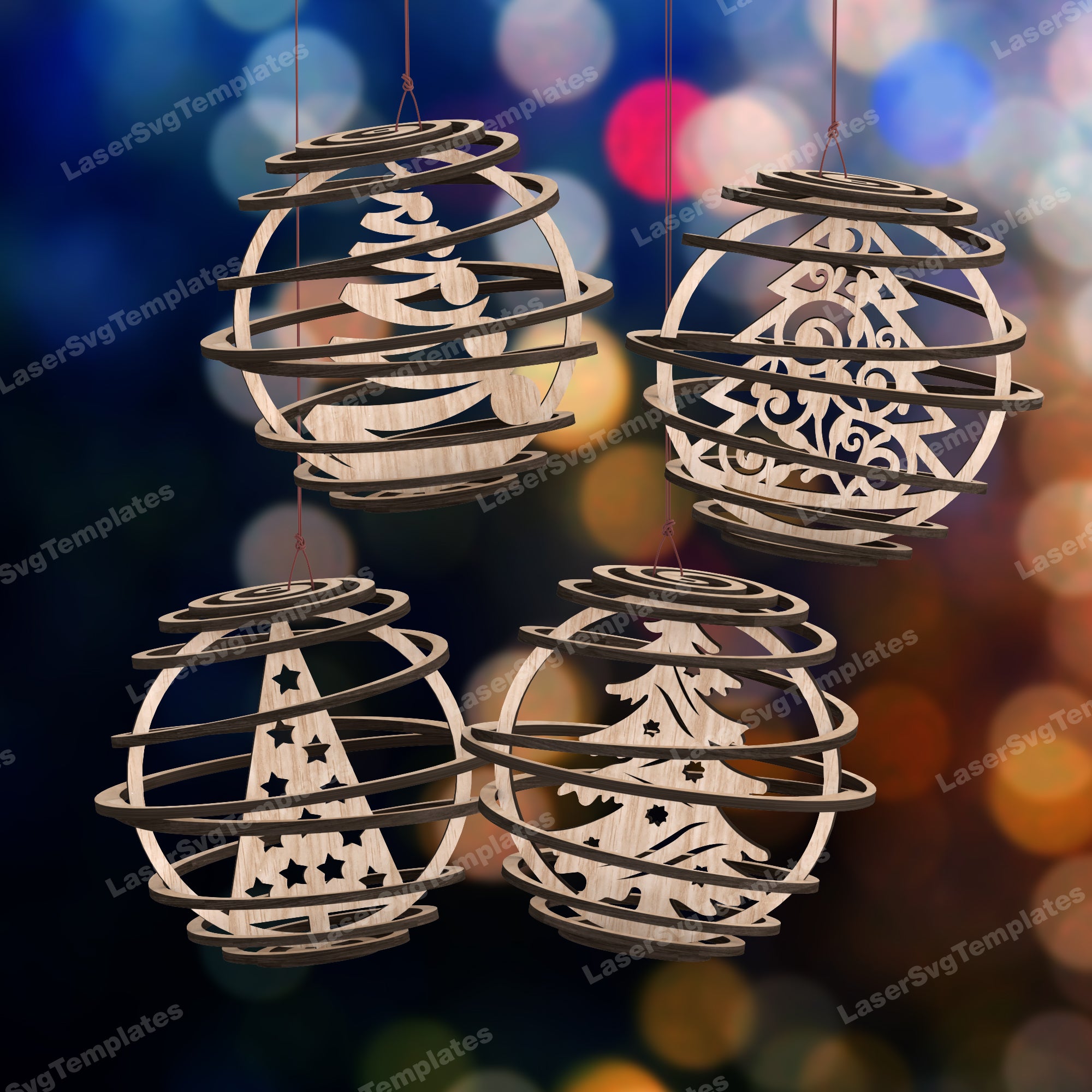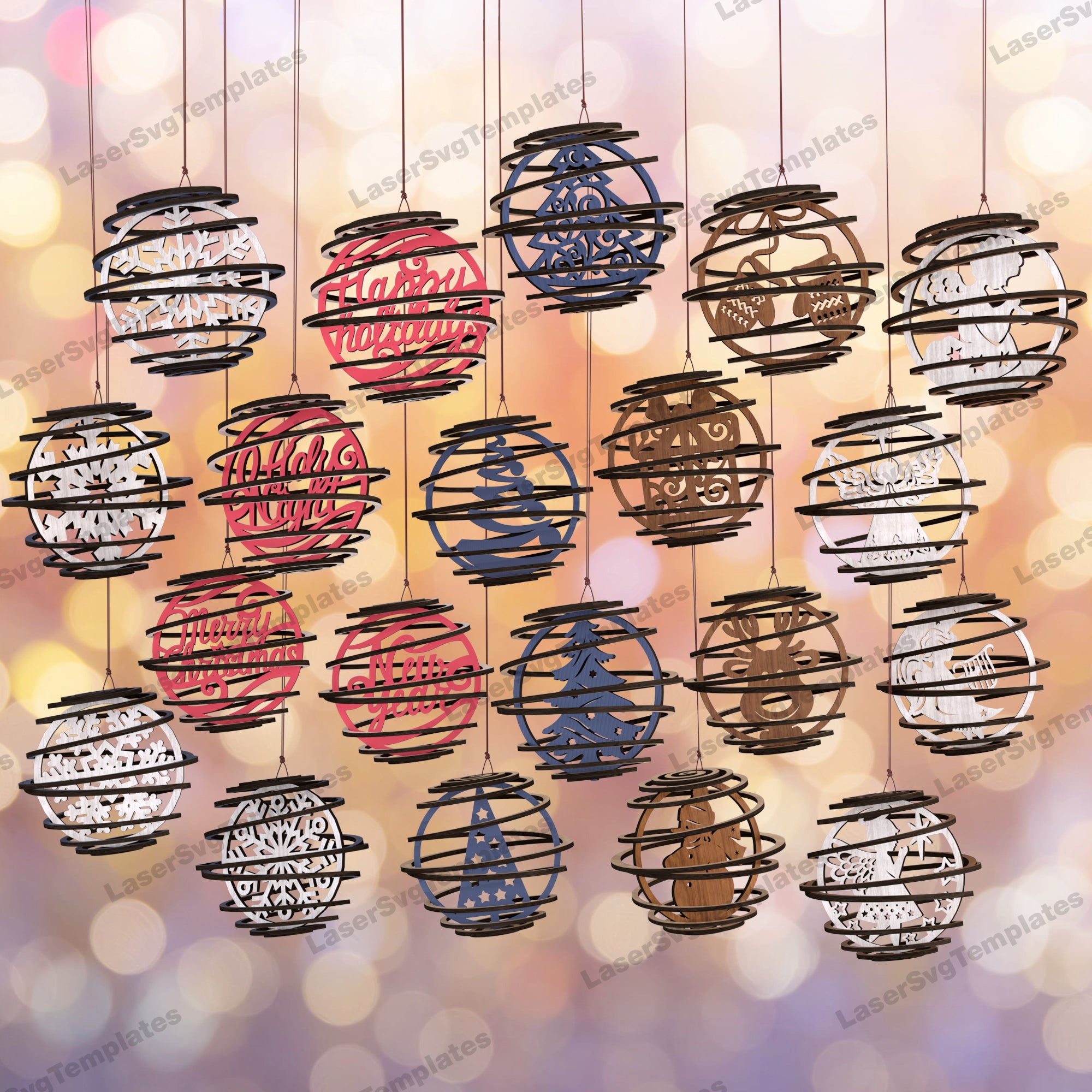 Ornamenti a spirale per la palla dell'albero di Natale, 20 pacchetti di file in formato SVG tagliati al laser
