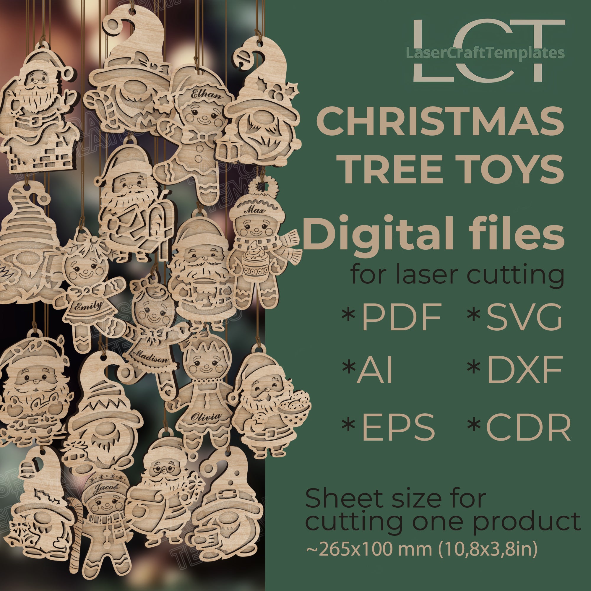 You will receive SVG, DXF, AI, EPS, CDR and PDF files, compatible with most laser cutting software.