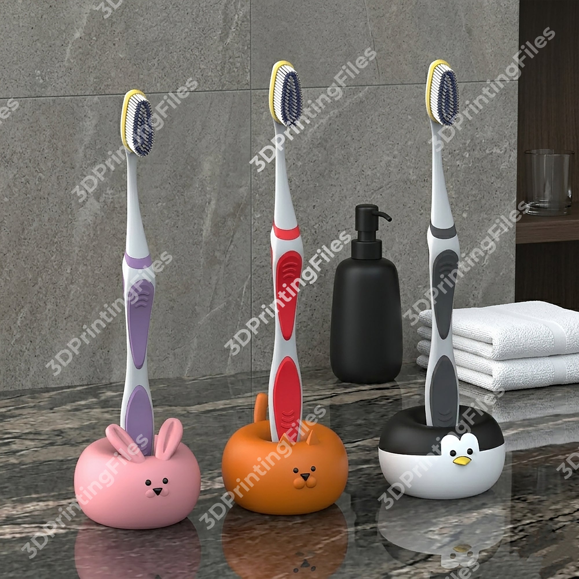 3 Animal Toothbrush Holder 3D Print STL File