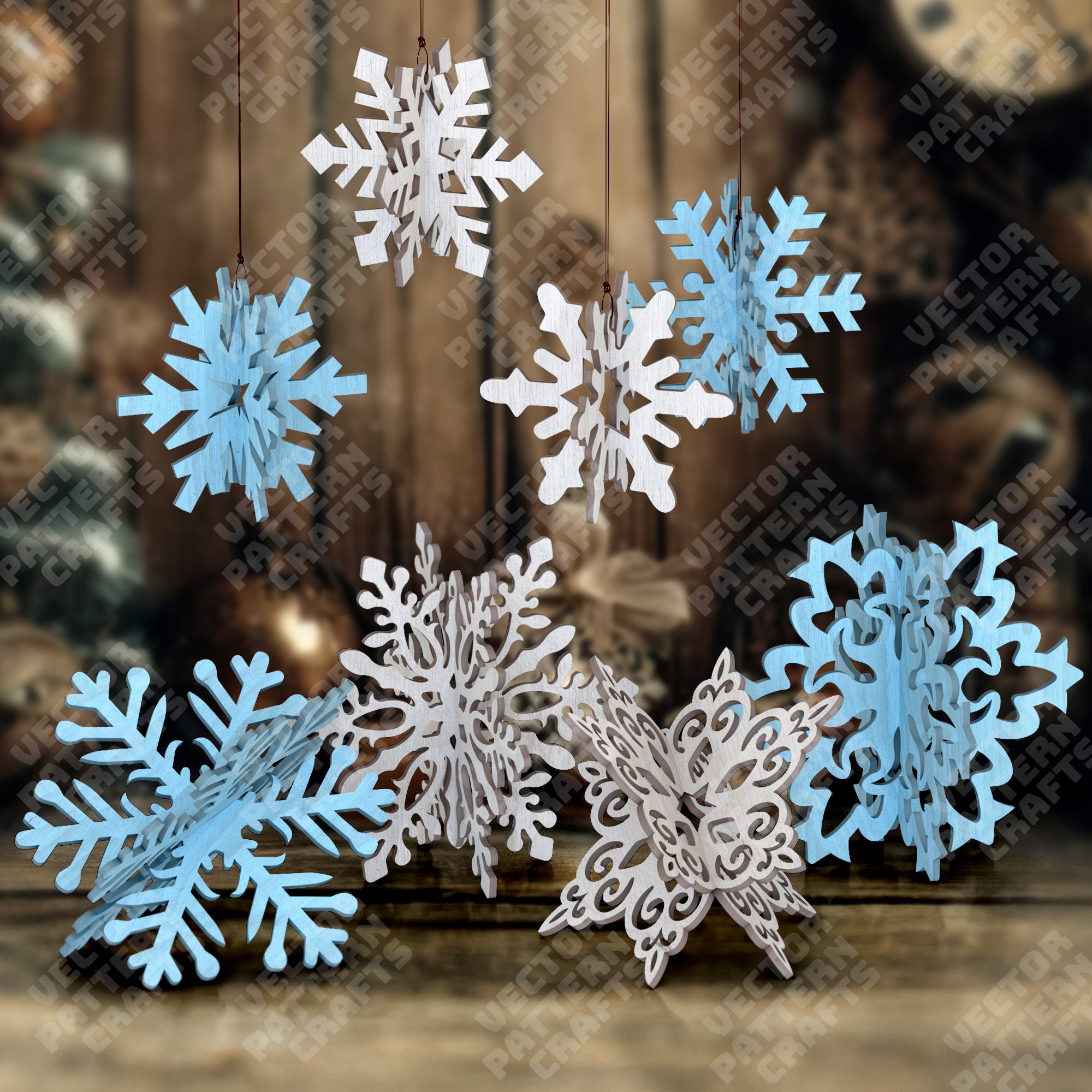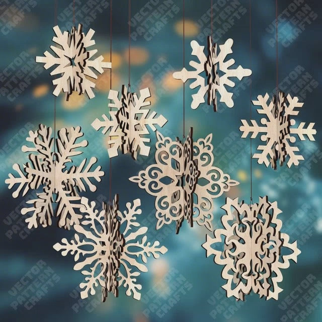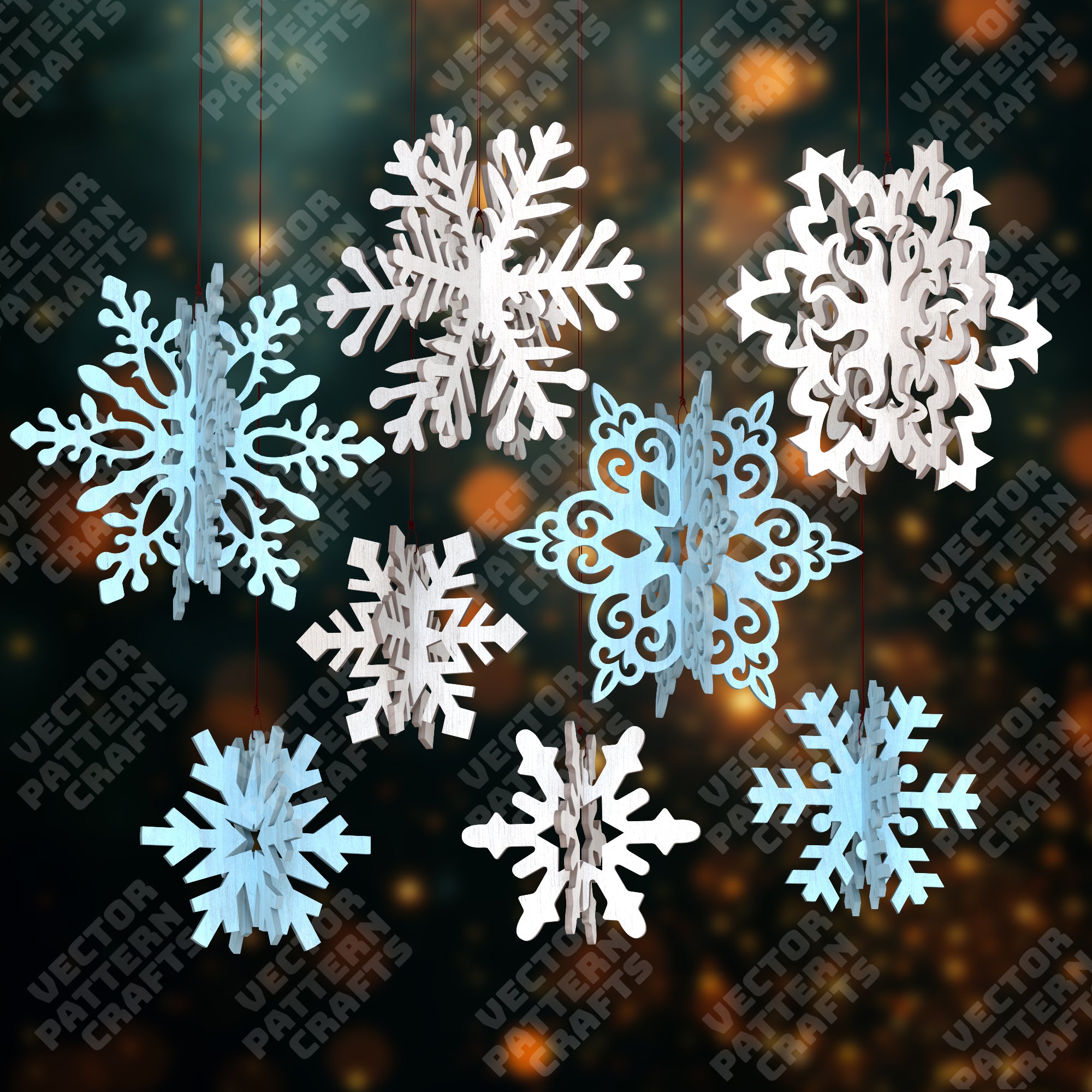 3D Christmas snowflakes 8 ornaments laser cut svg cutting file