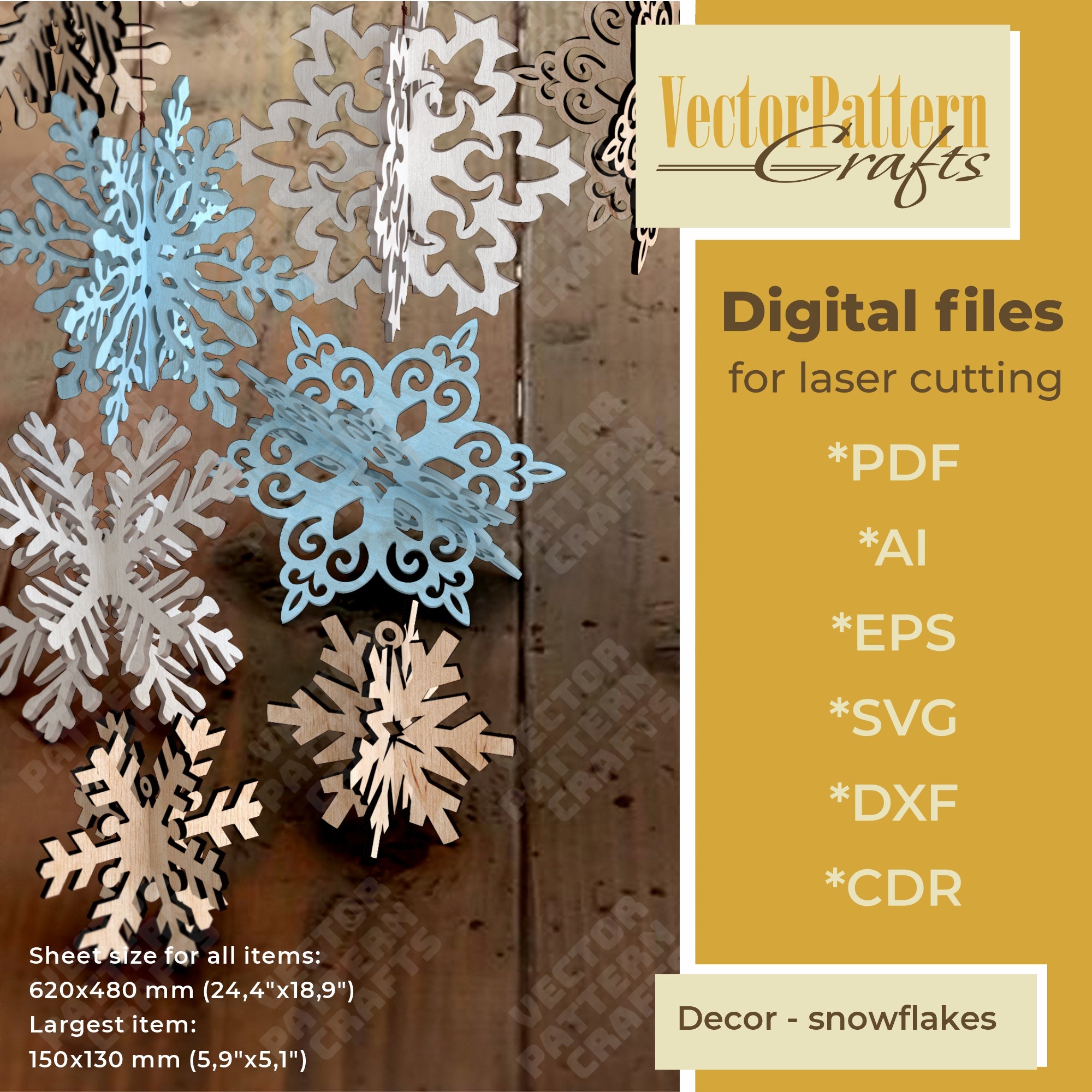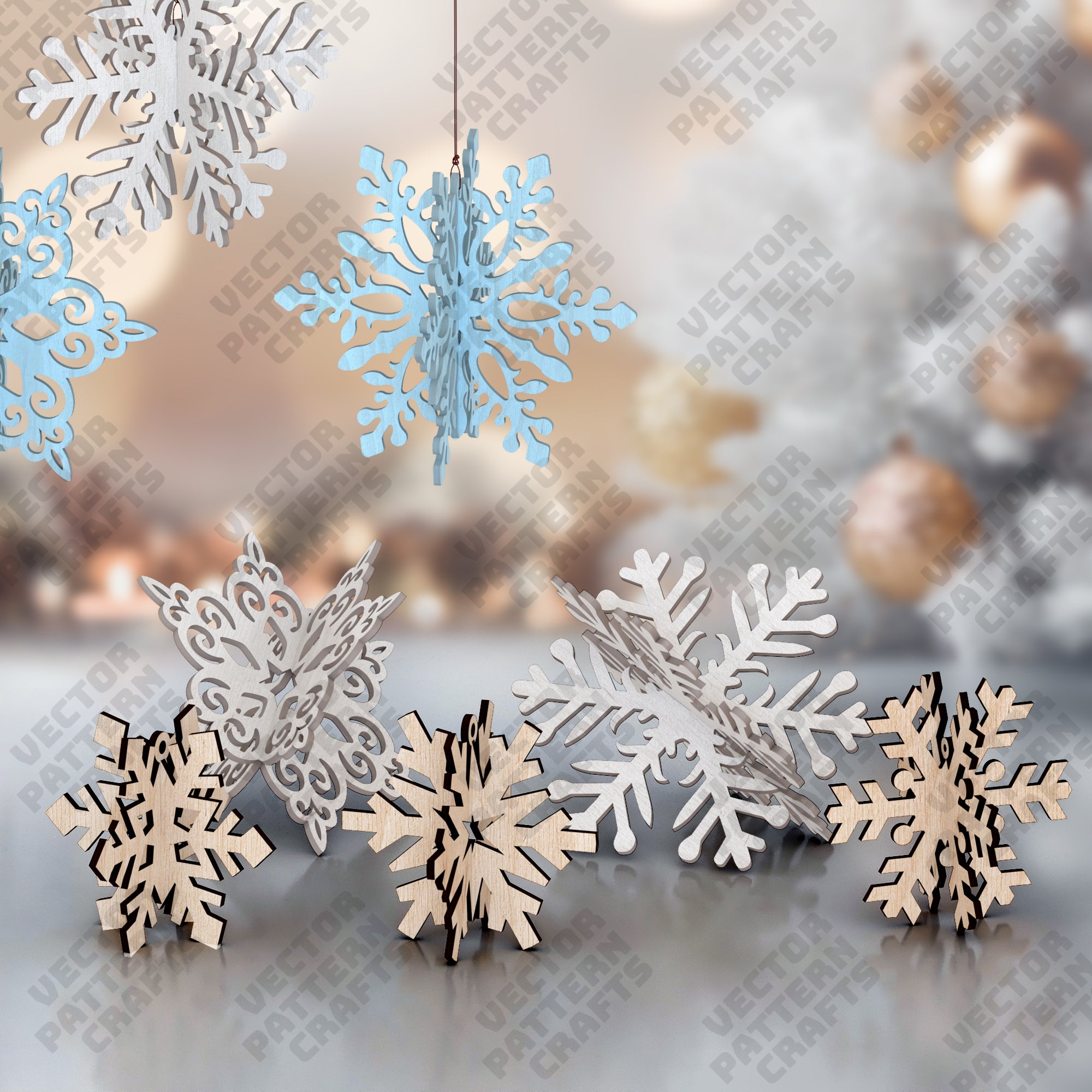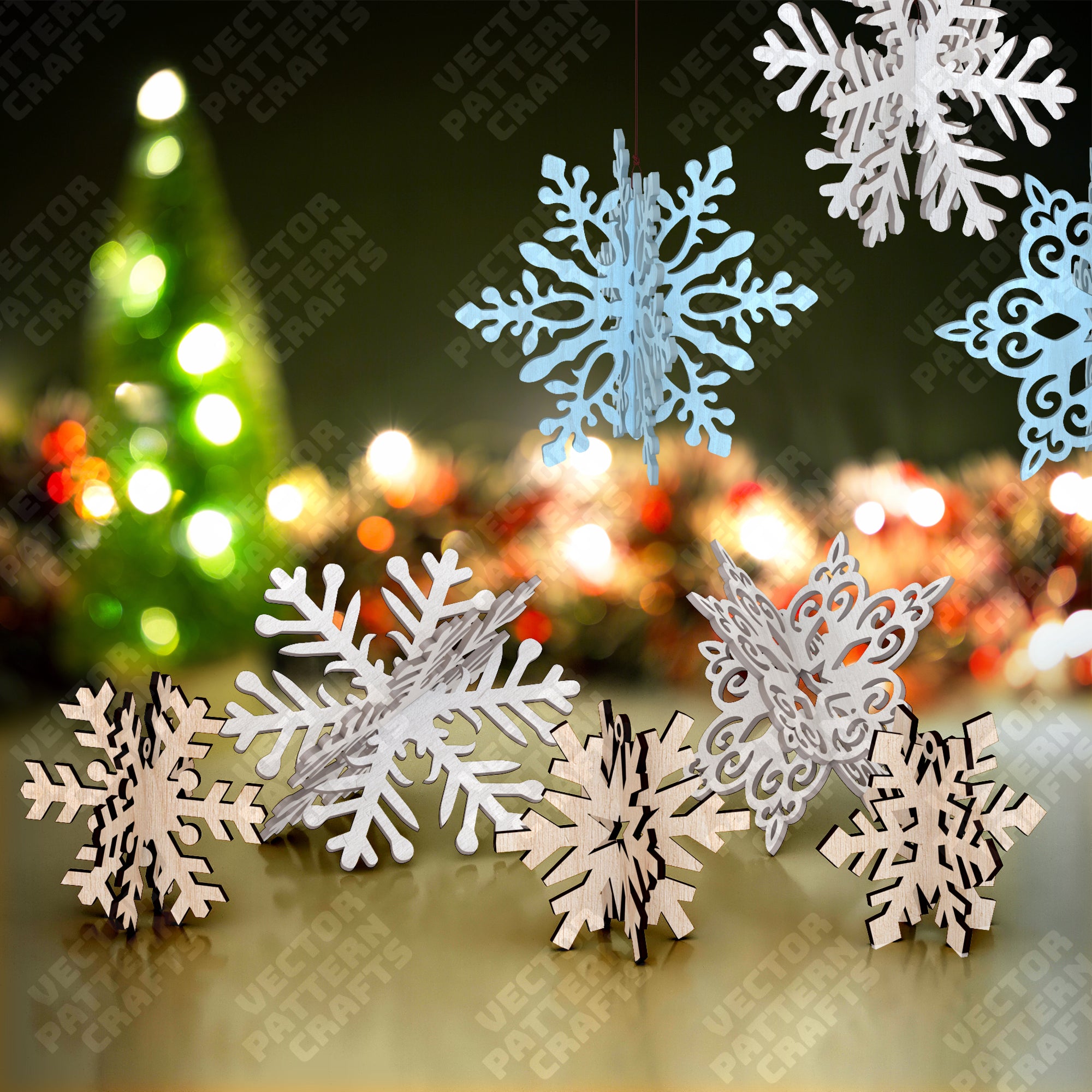 3D Christmas snowflakes 8 ornaments laser cut svg cutting file