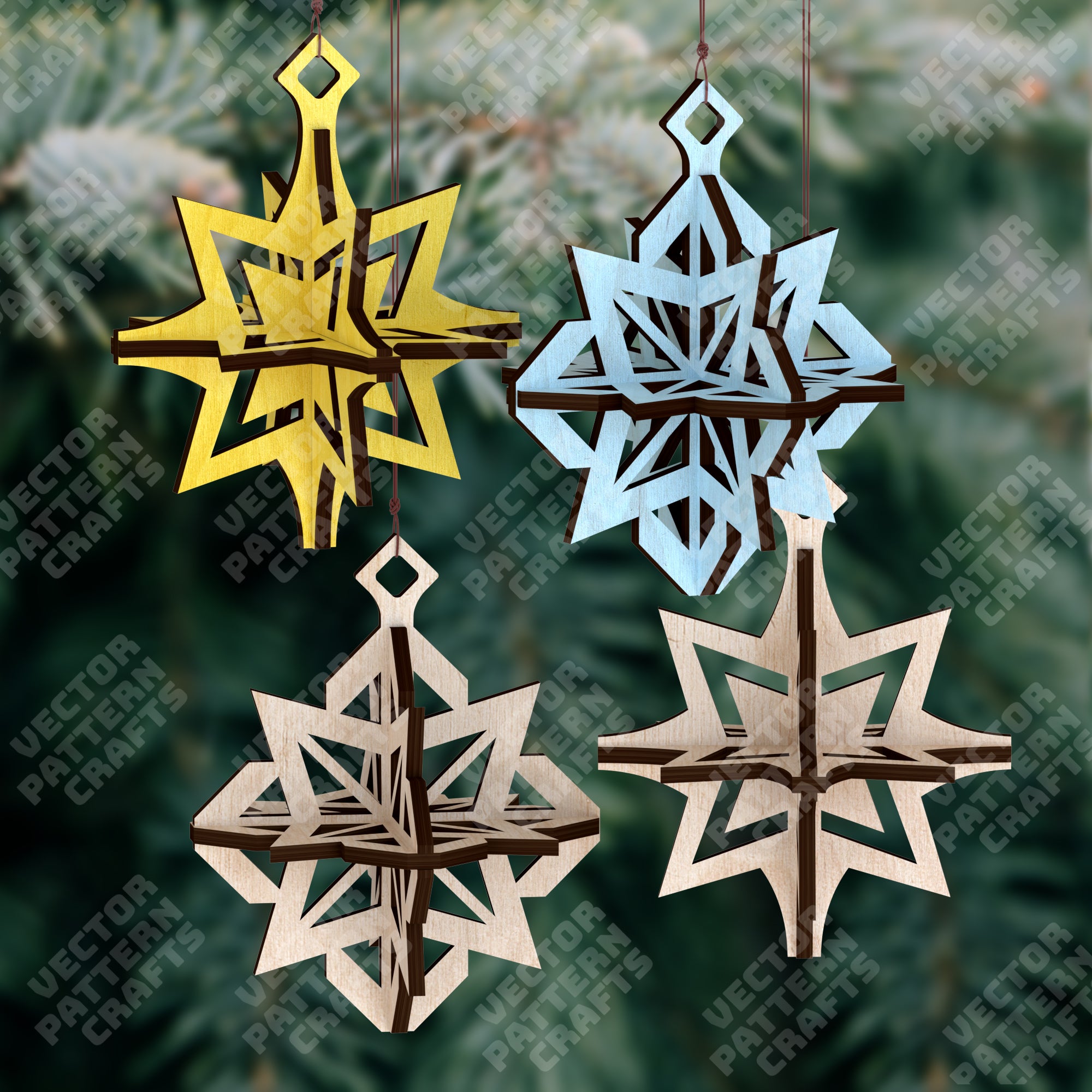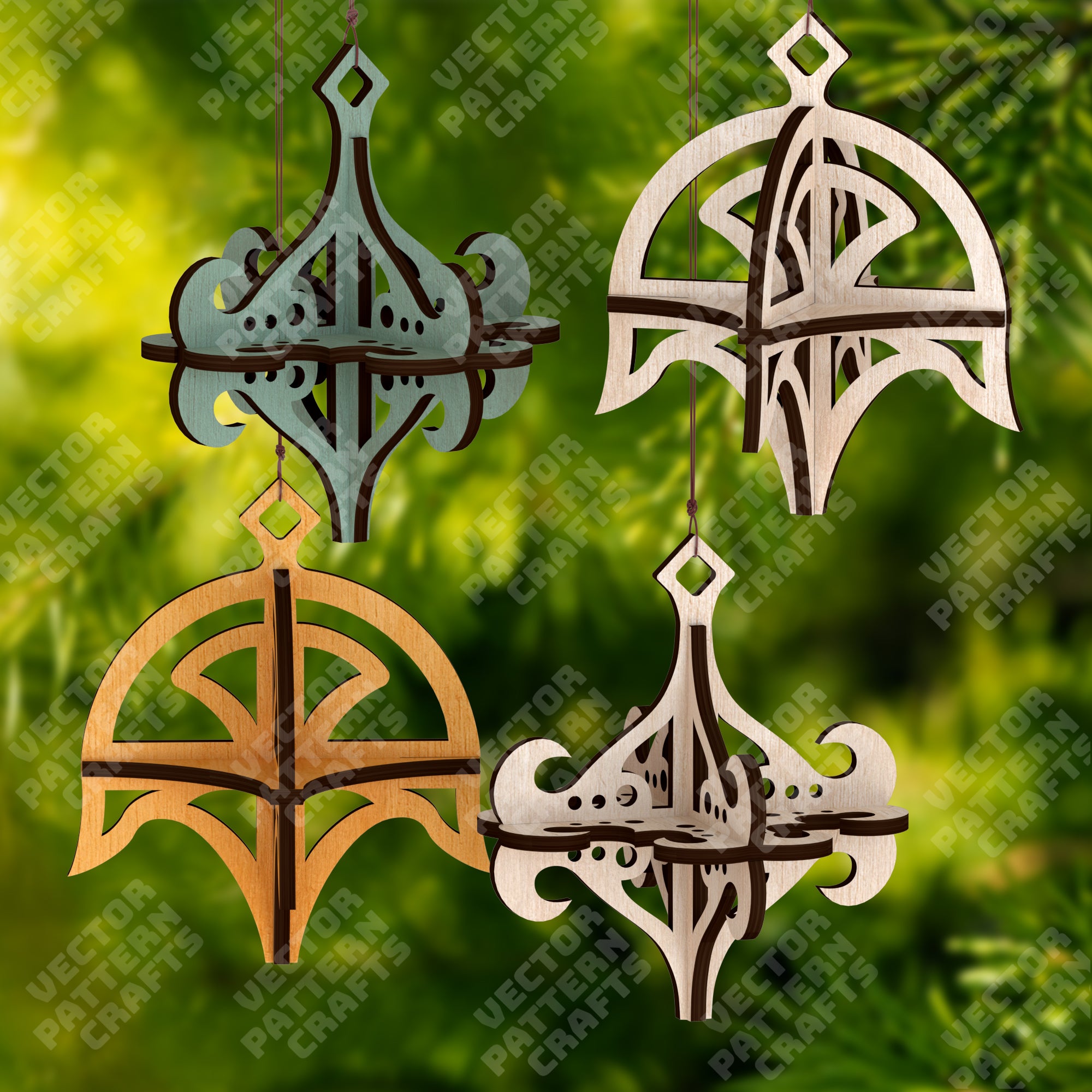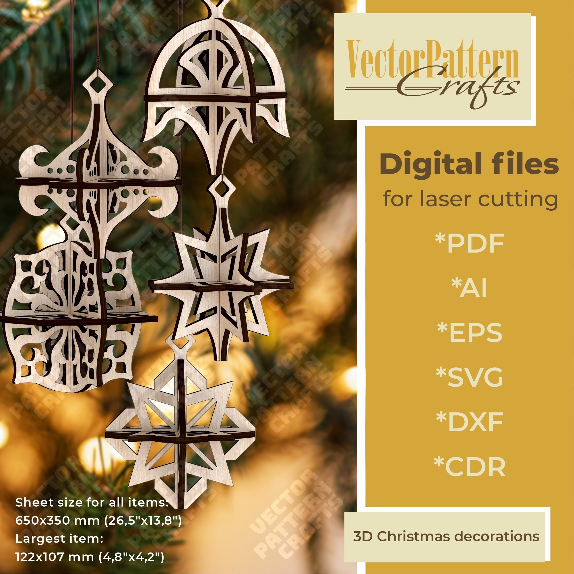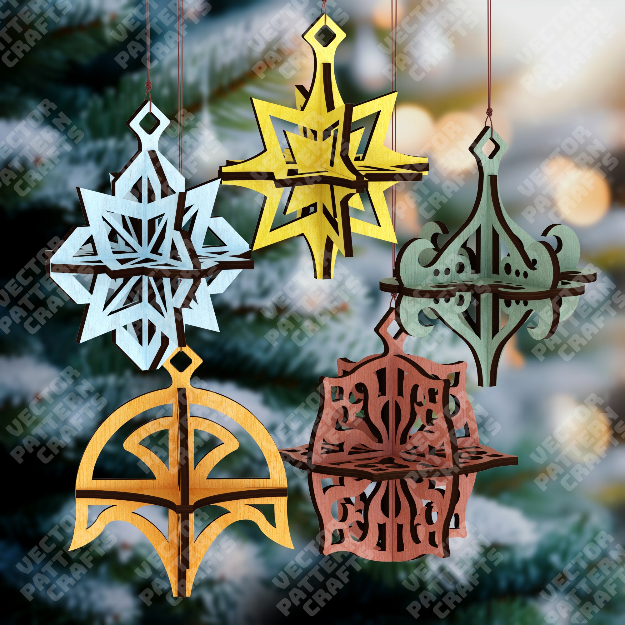 3D Geometric christmas ornaments 5 bundle laser cut svg file