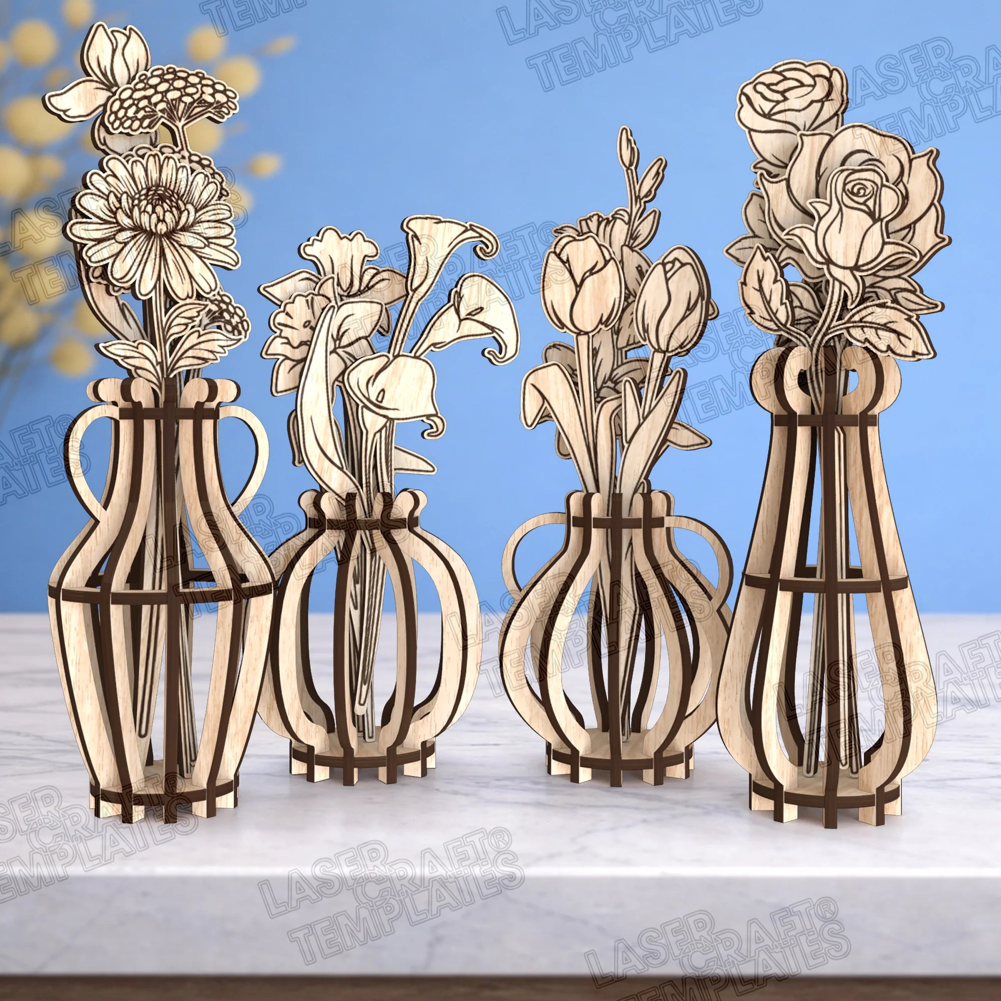 13 Flowers vase laser cut svg file