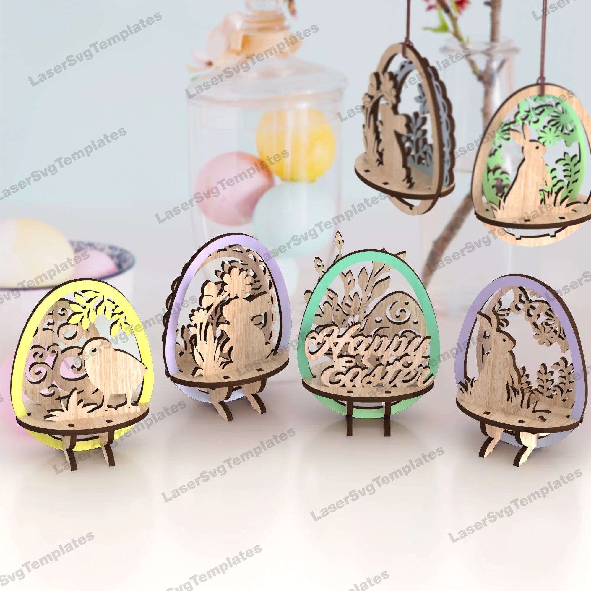 — Easter Bundle: egg holder, house, basket, egg ornaments, wall decor, table decor, candle holder, multilayer bunny and Lantern – 9 must-have laser-cut designs for the perfect Easter!