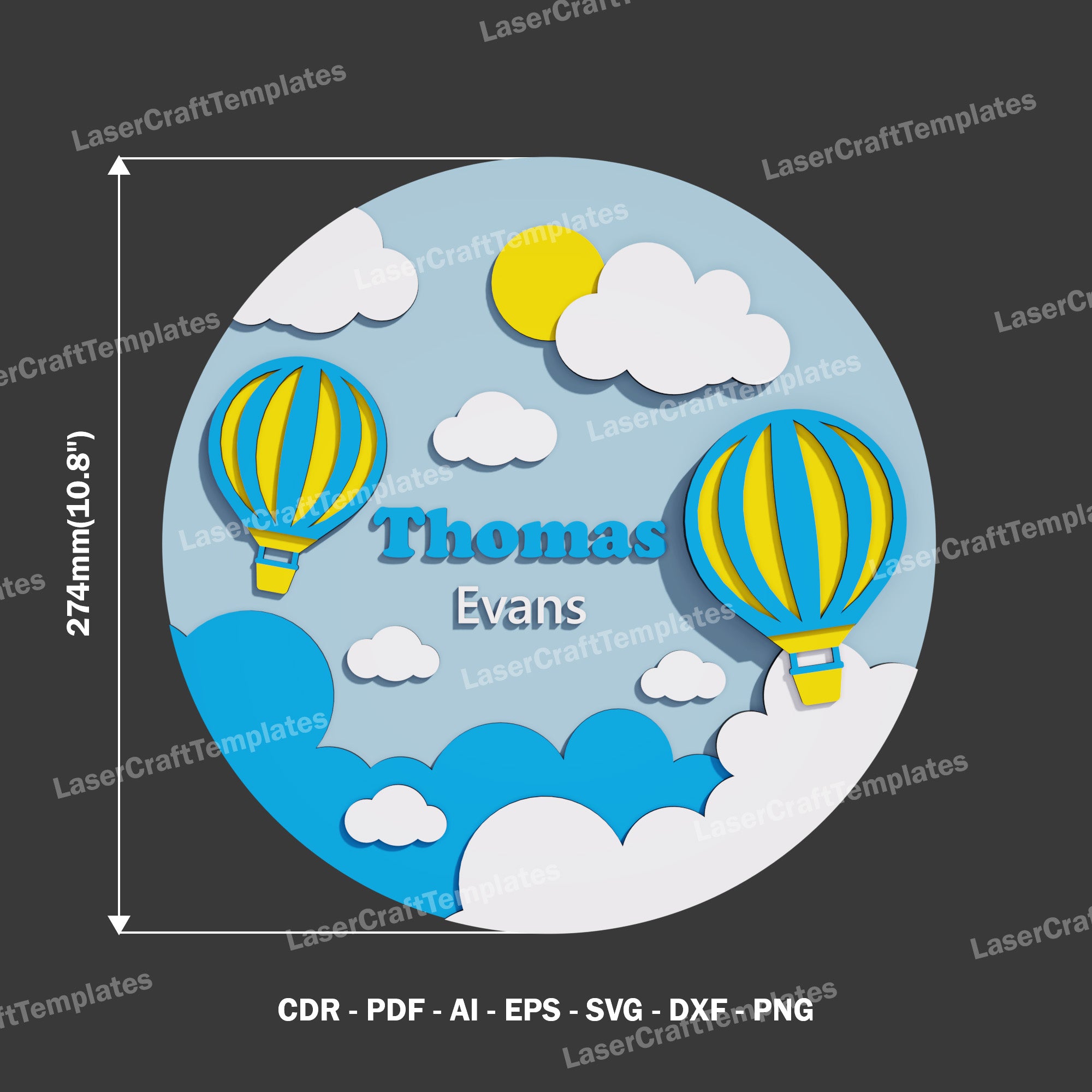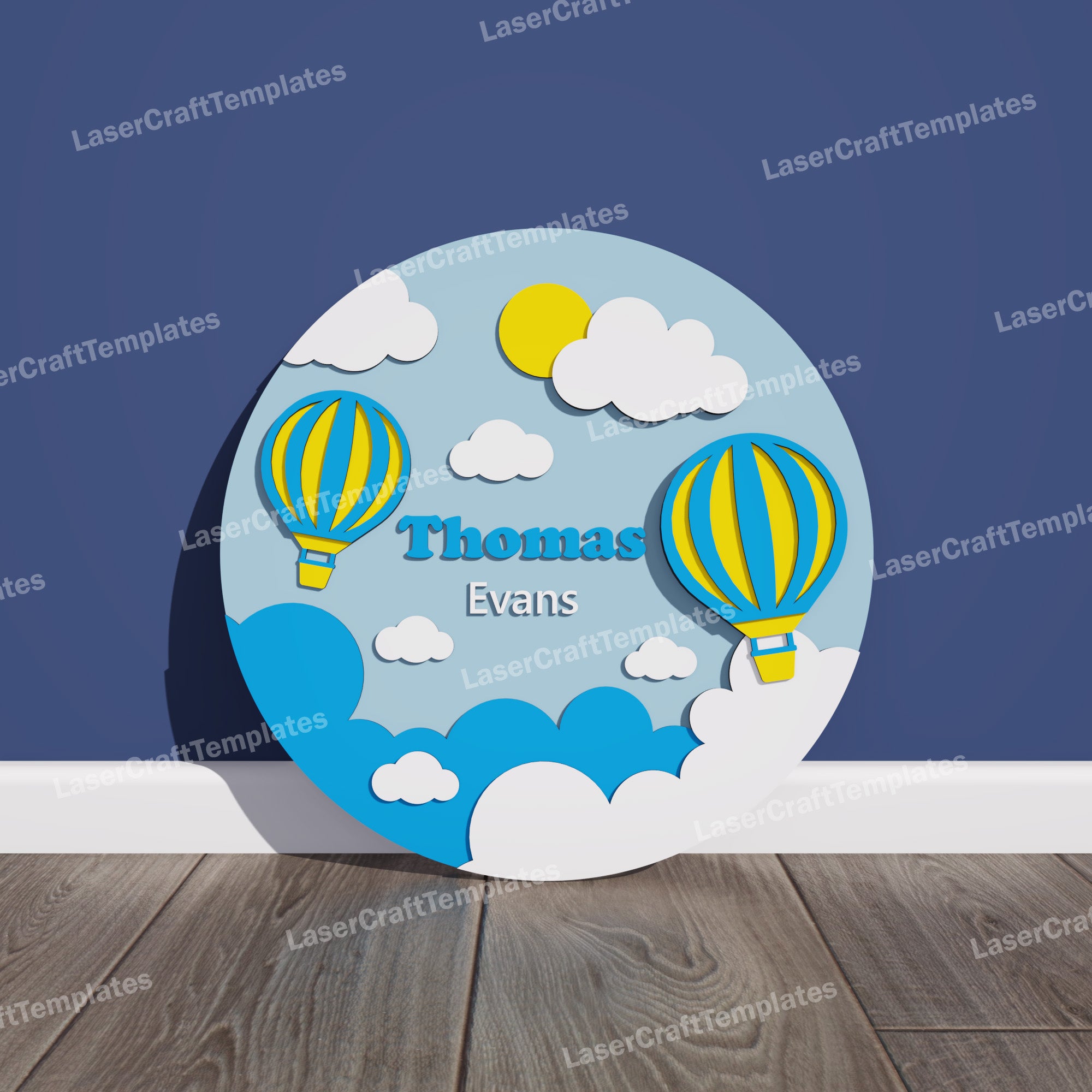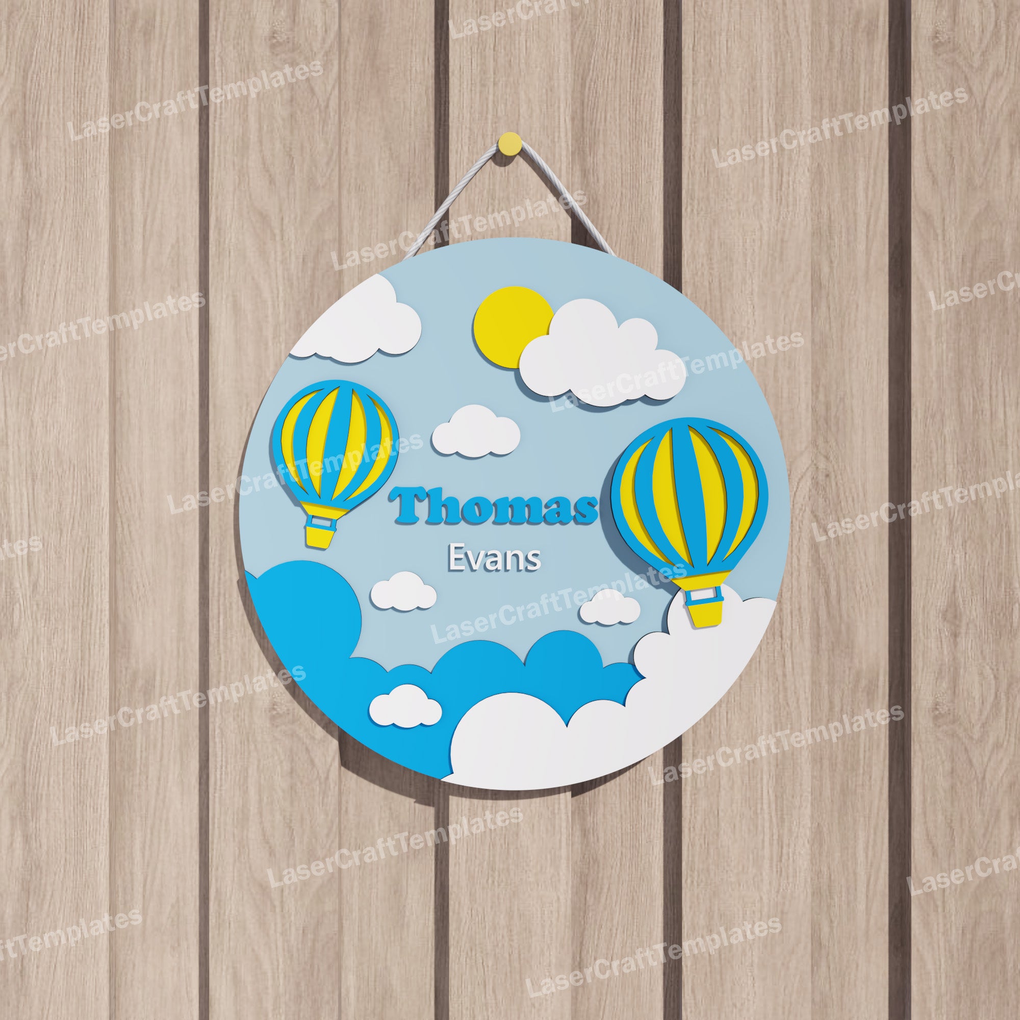 Wooden Sky Baby Name Sign Door hanger laser cut svg file
