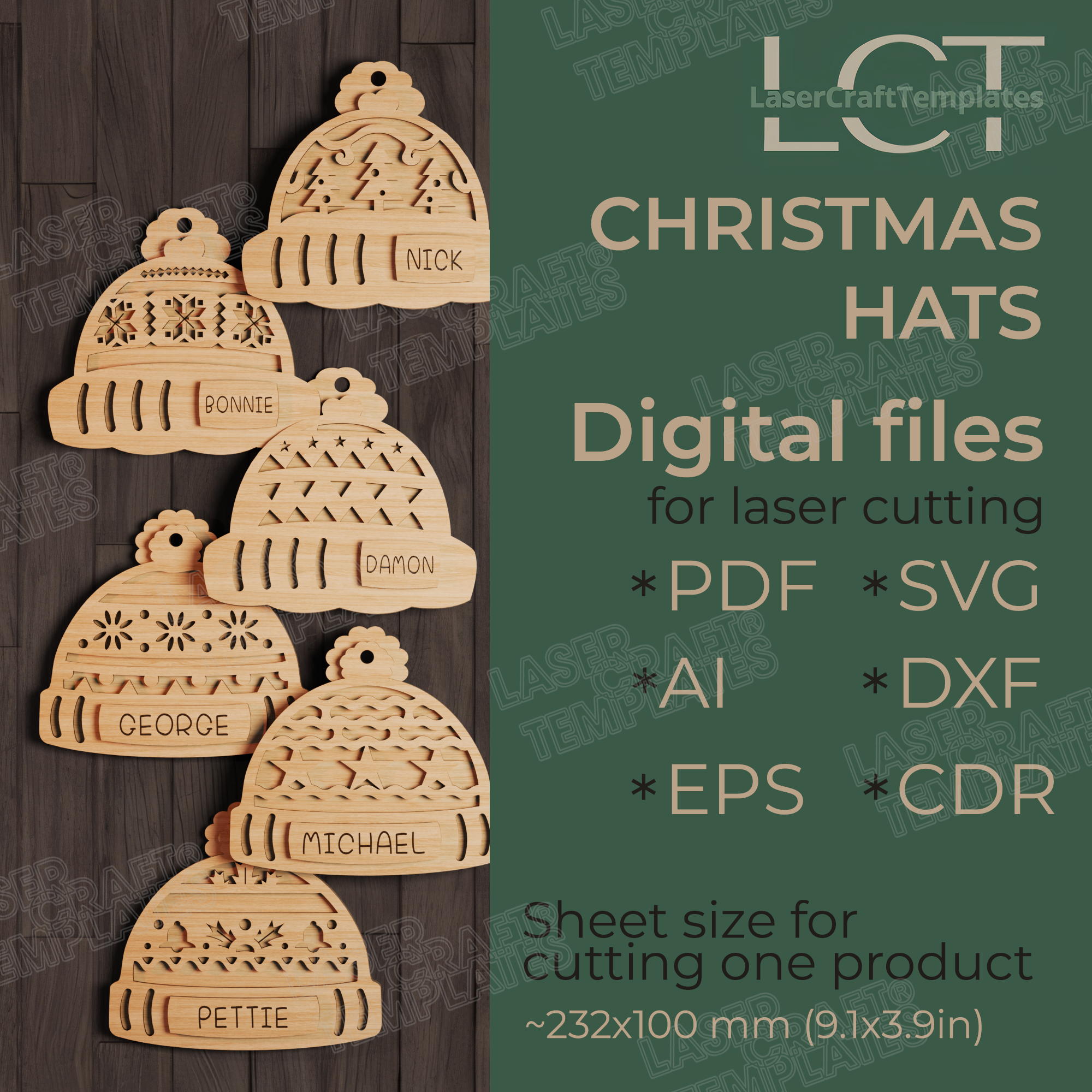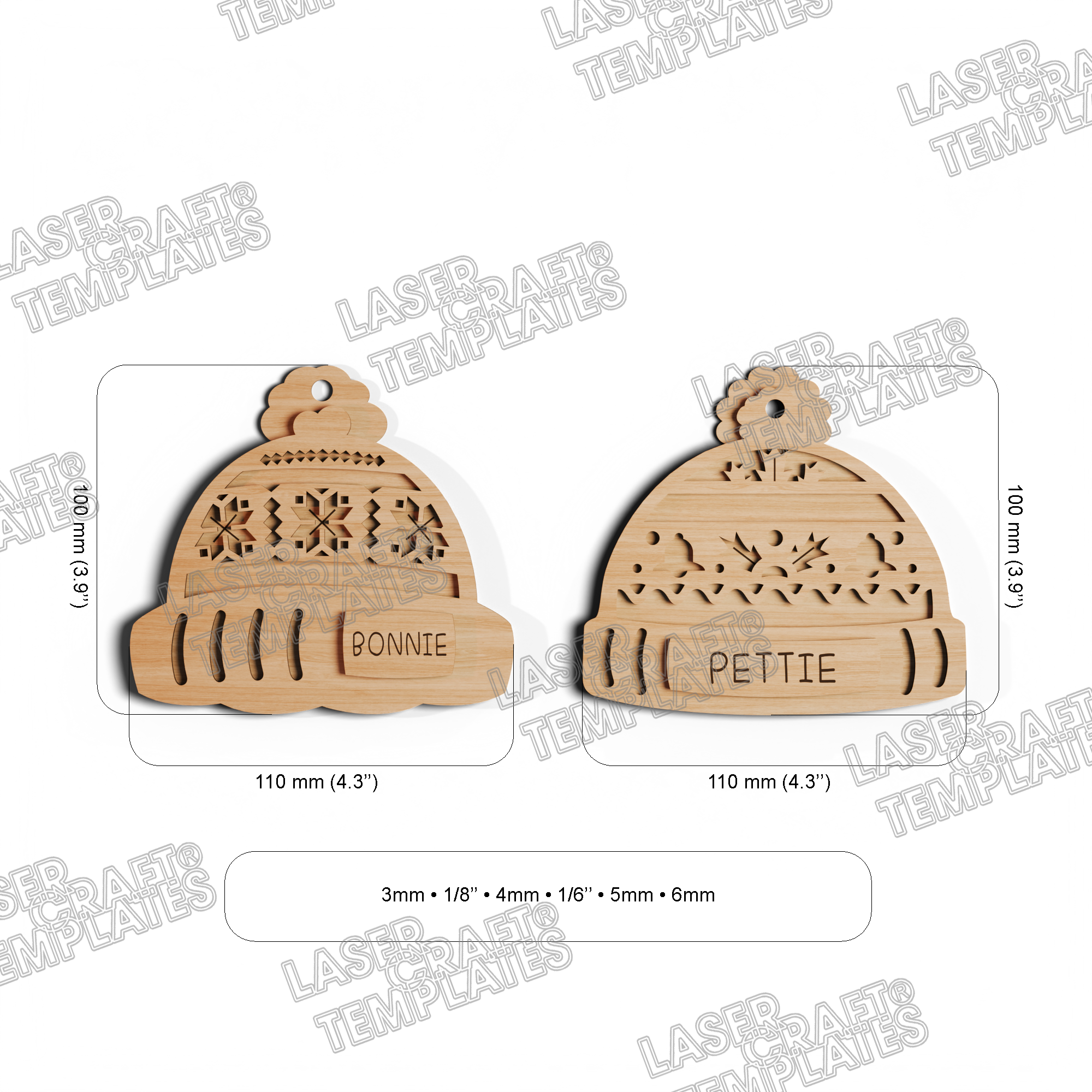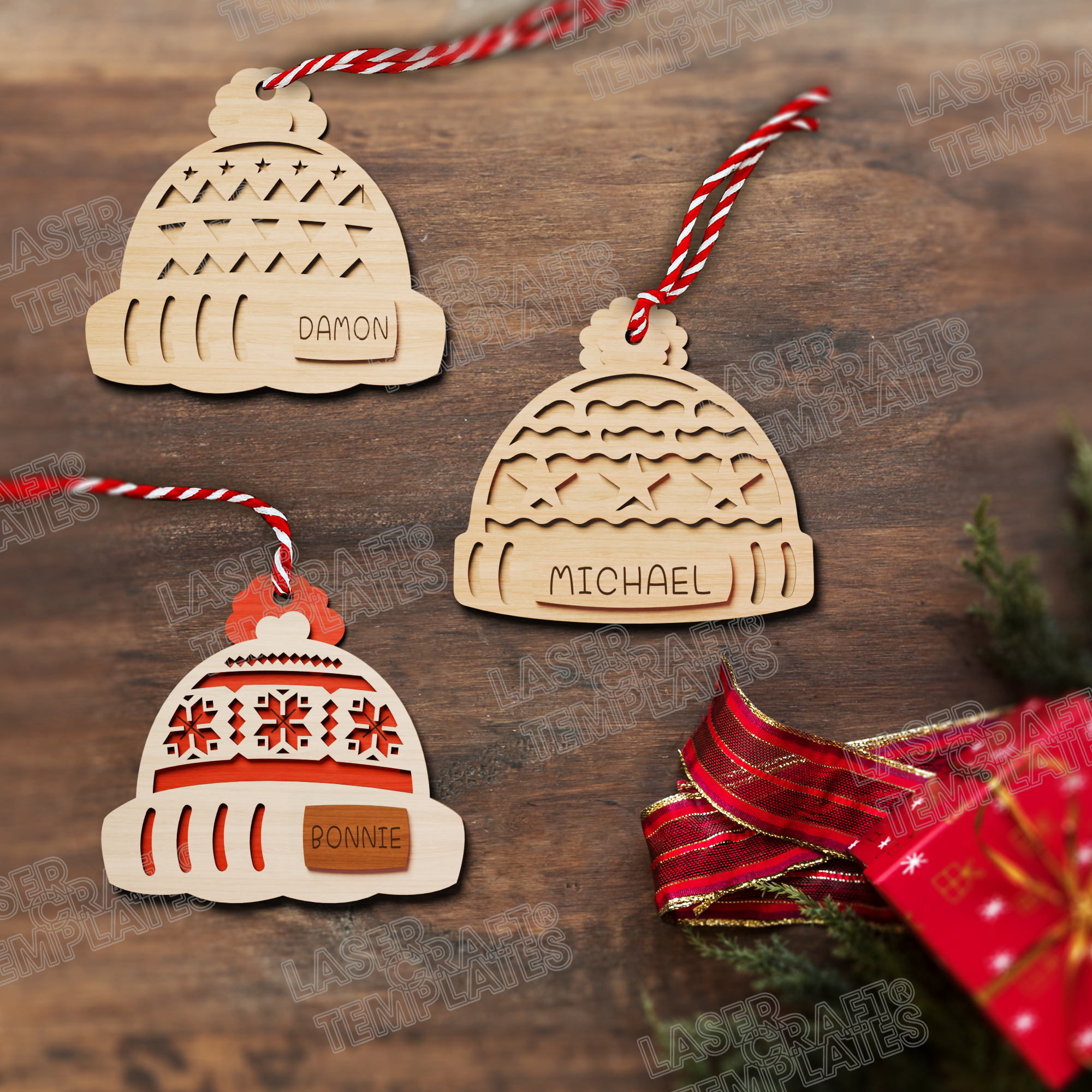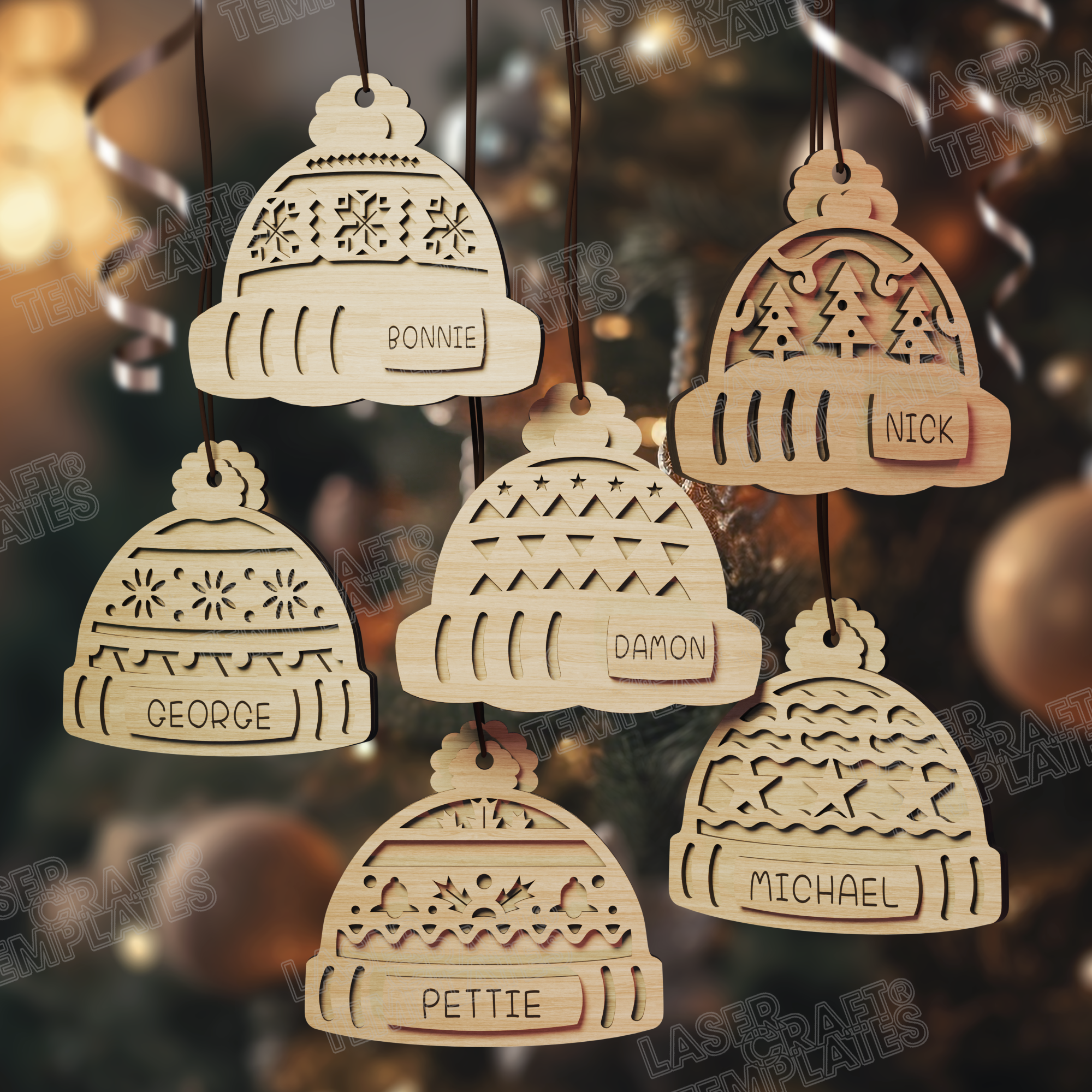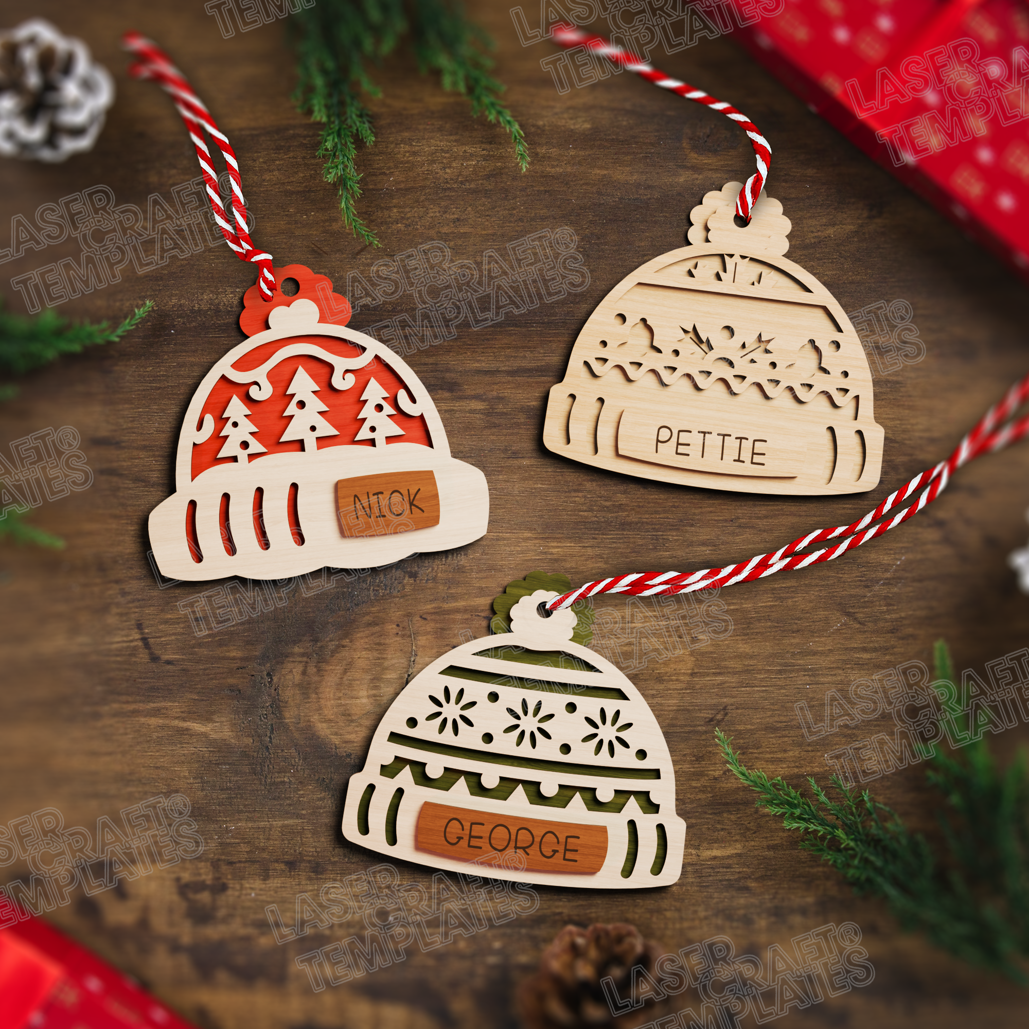 🔹 Christmas custom name hat ornaments 6 bundle laser cut svg file