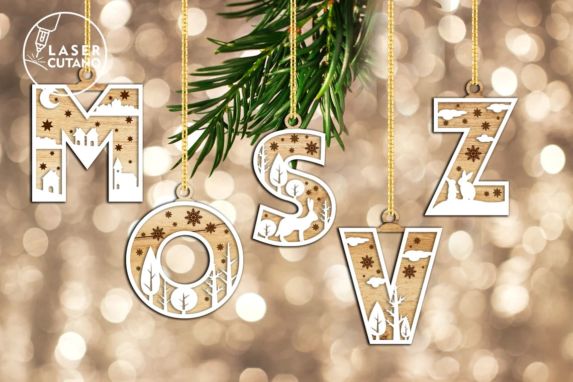 Christmas Ornament Alphabet Laser Cut Svg File