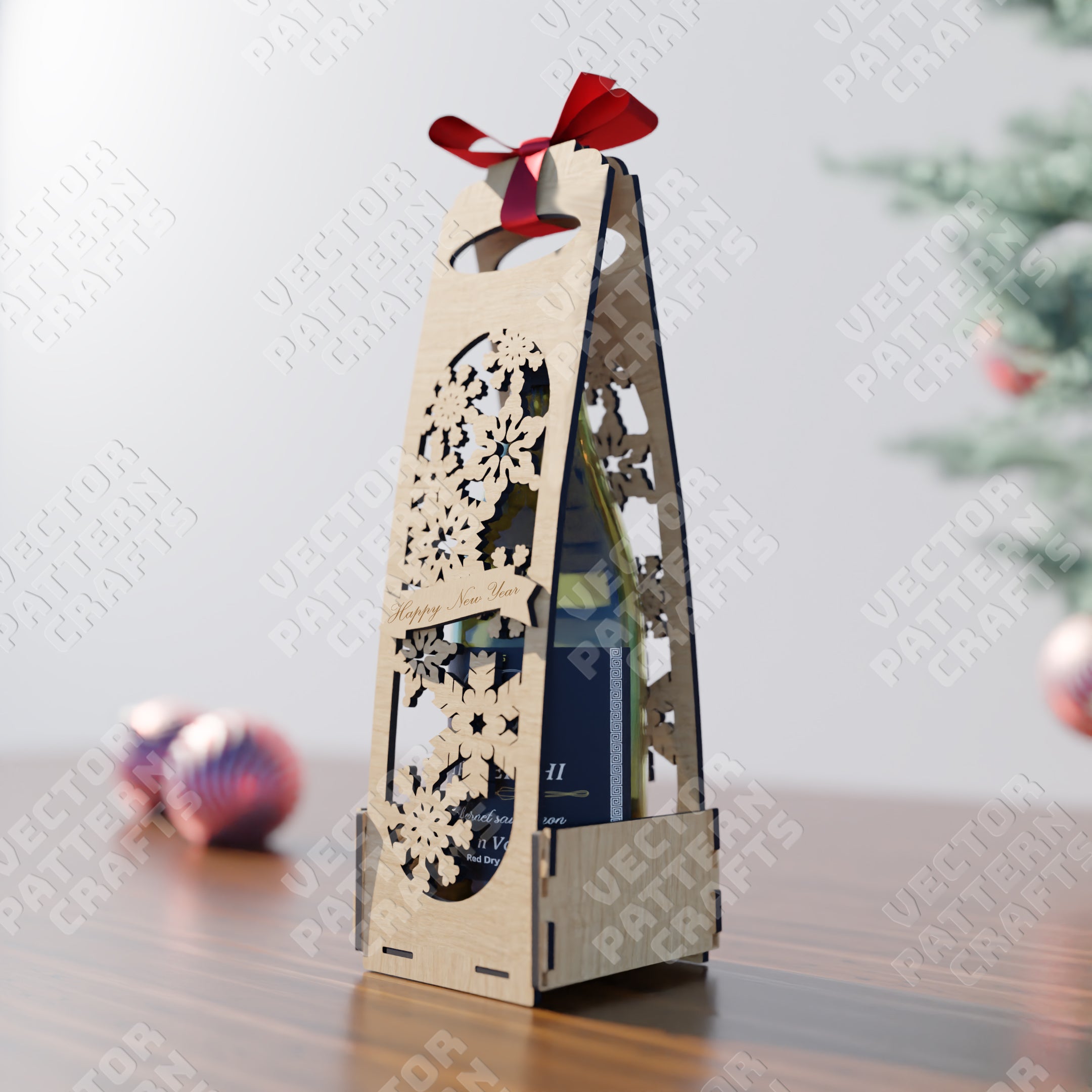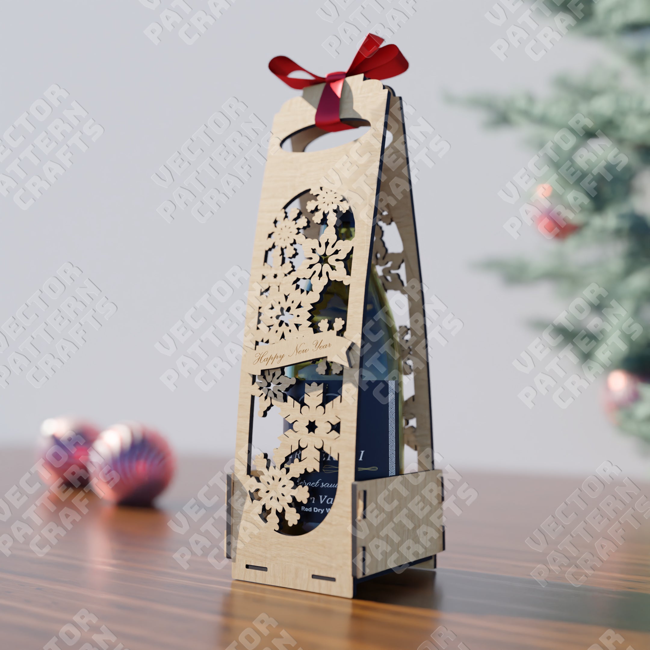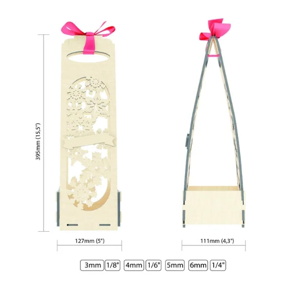 Christmas wine gift box svg laser cut file