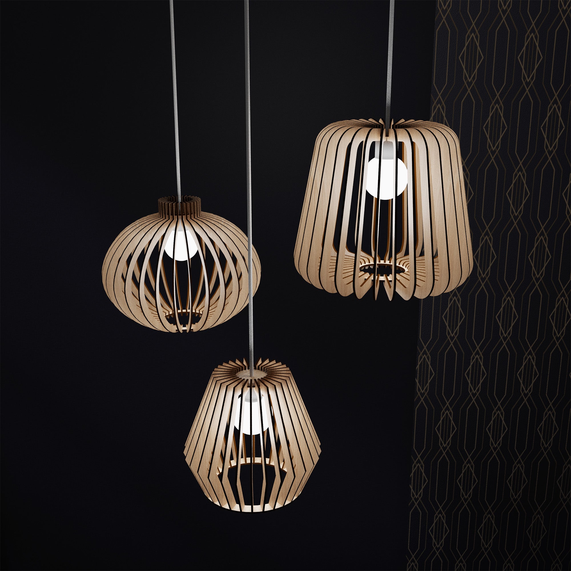 Laser cut decorative pendant lamps 3 bundle svg template