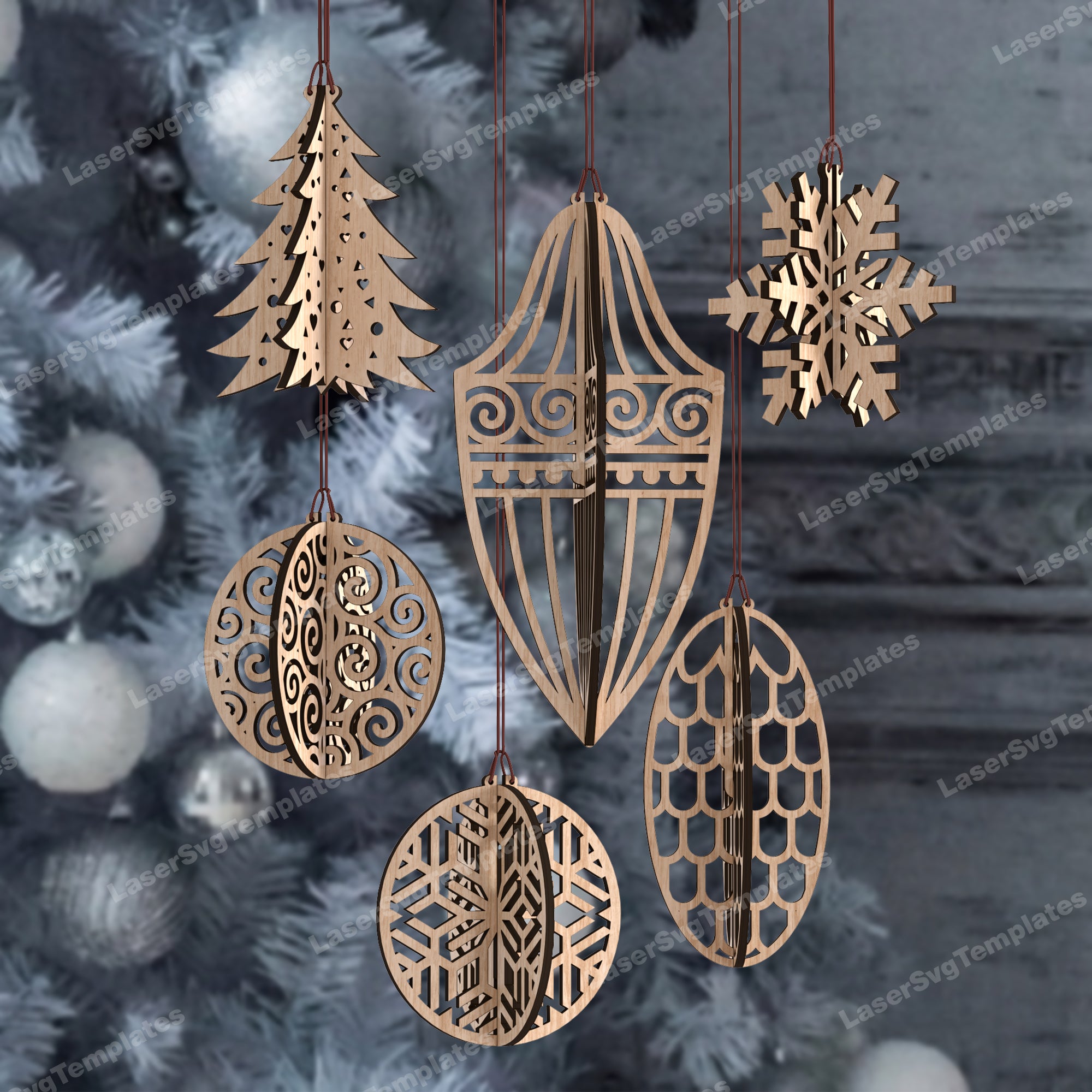 — Christmas tree ornaments ball 6 bundle laser cut svg file