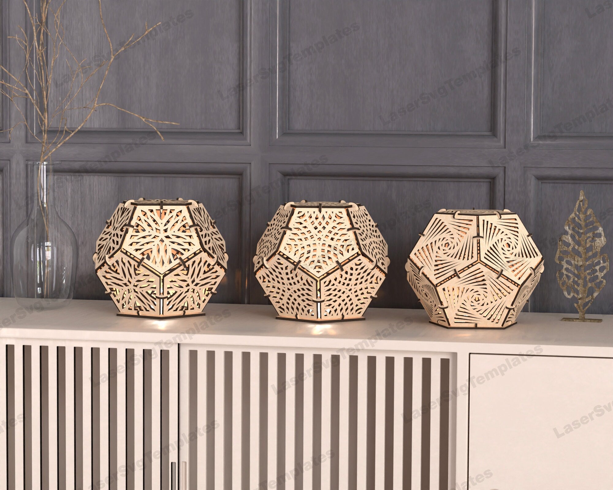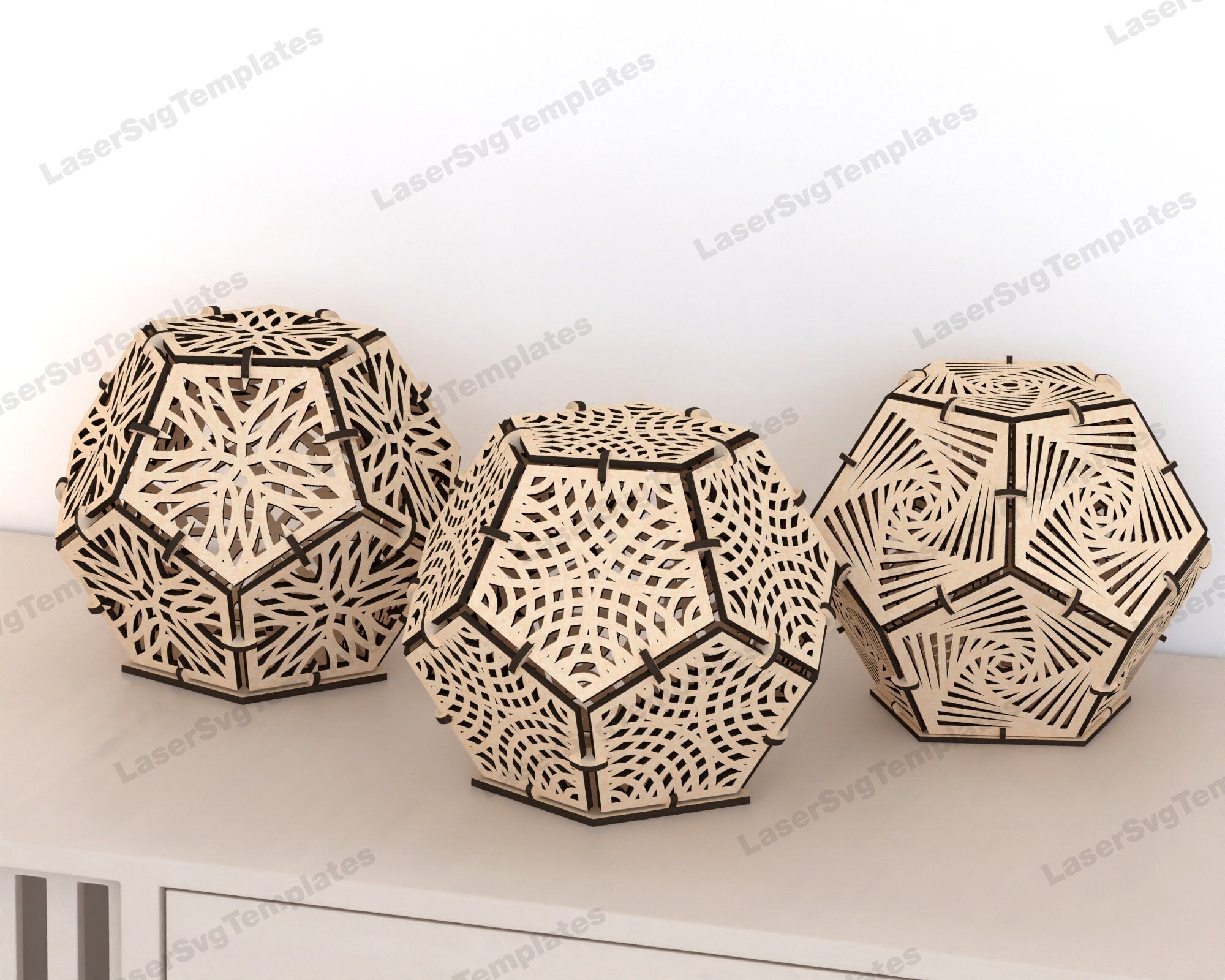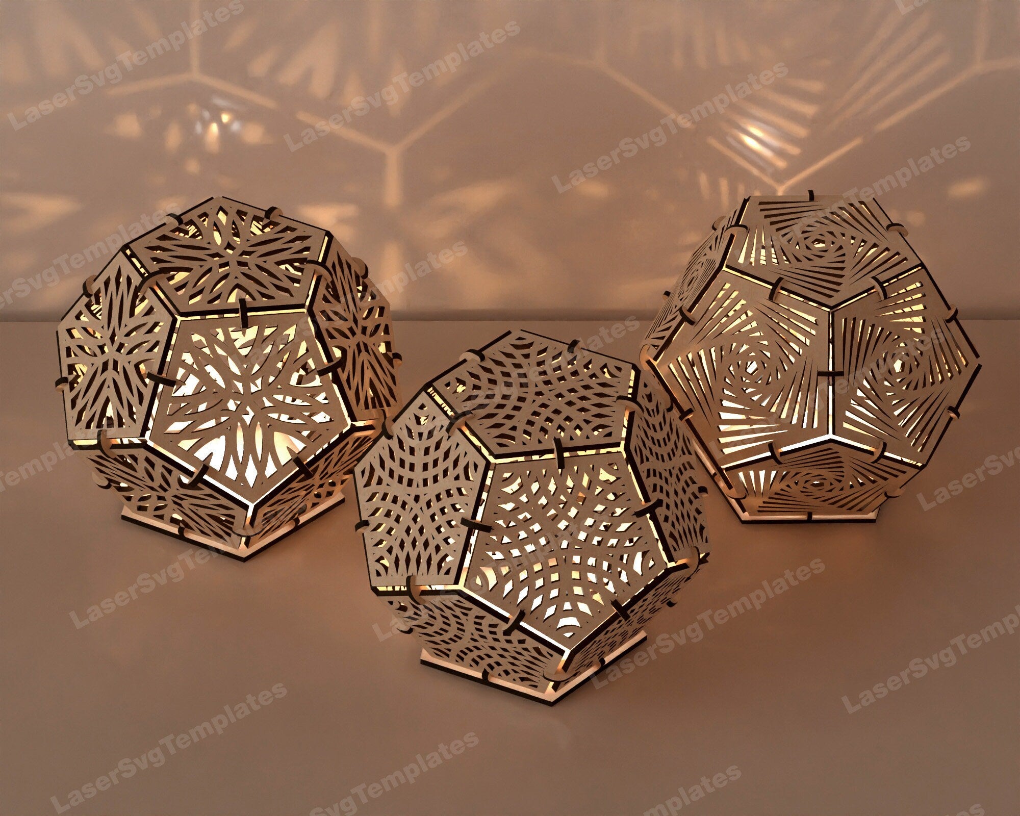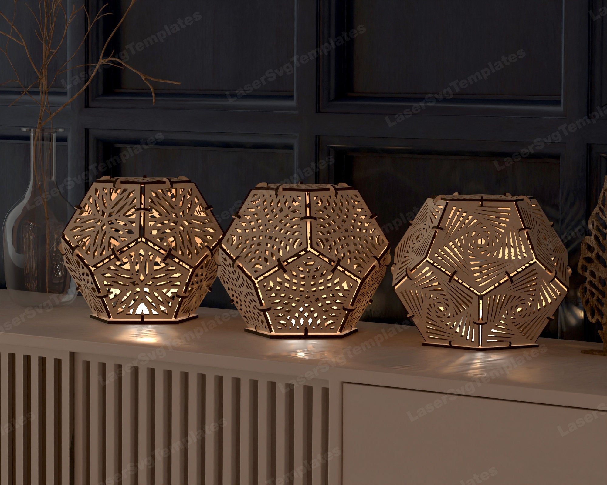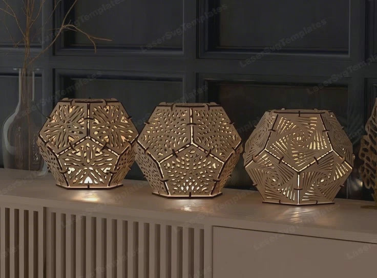 Laser cut wooden dodecahedron table lamp bundle svg file