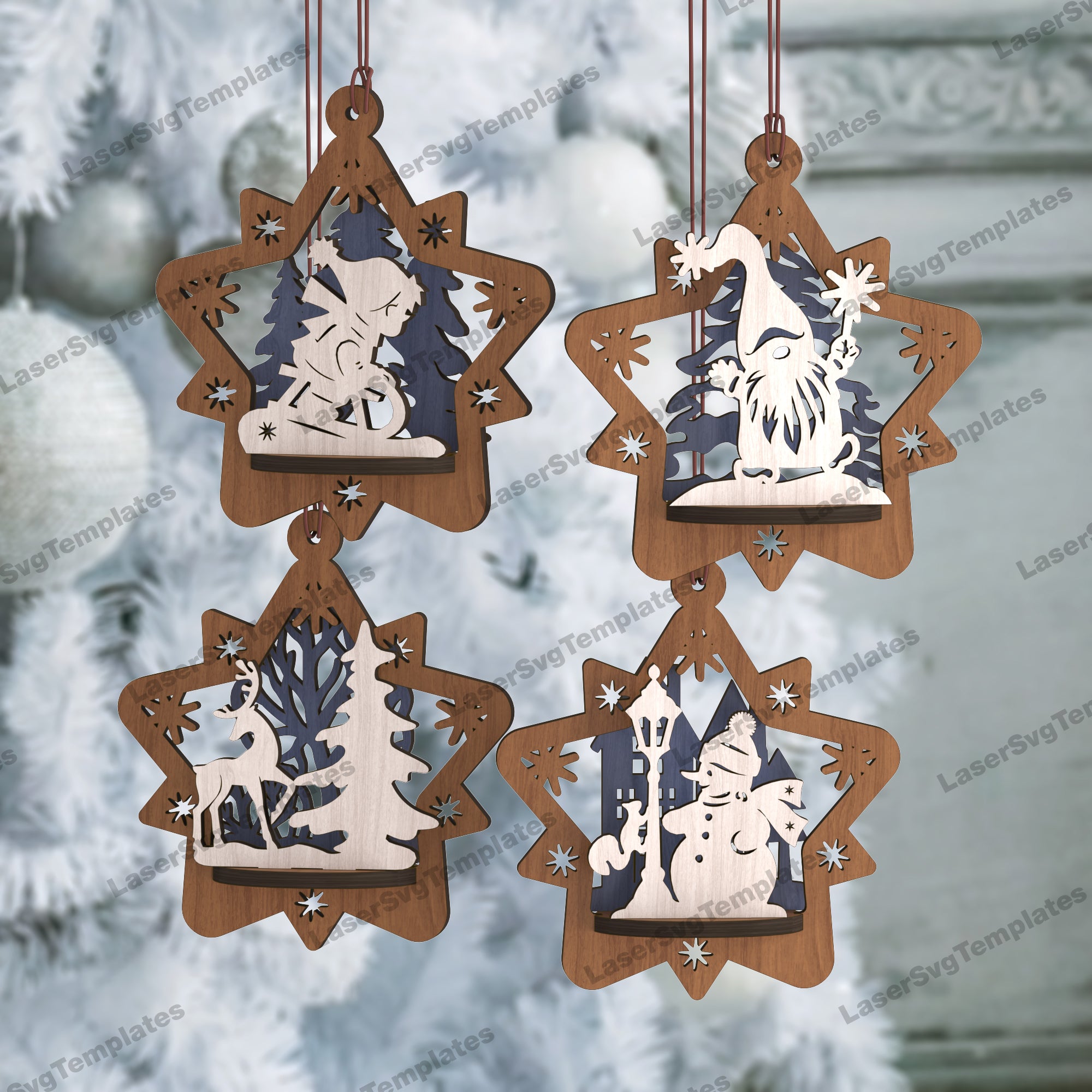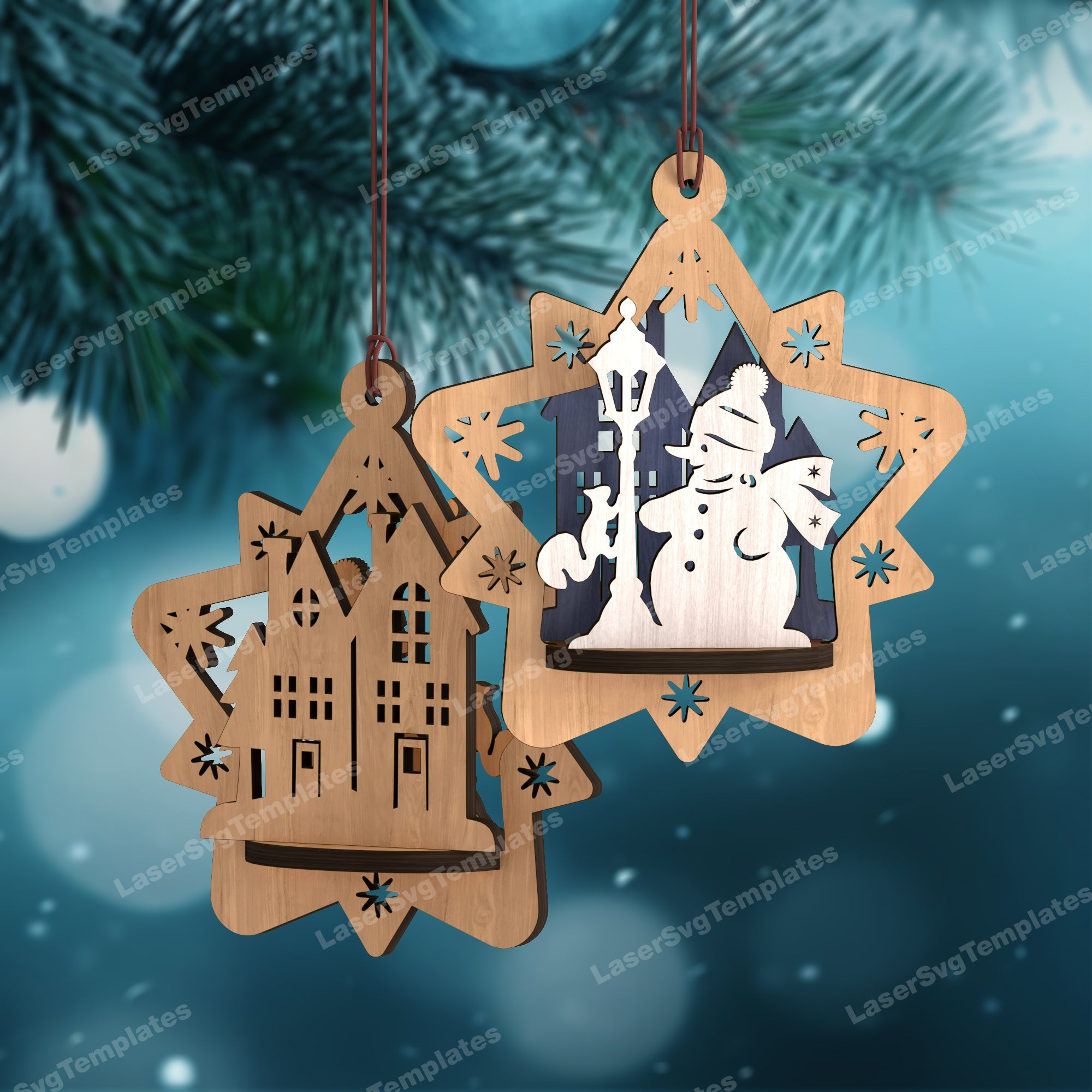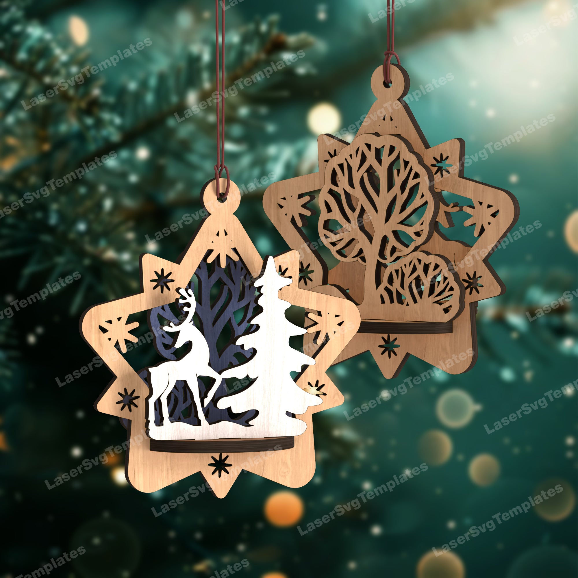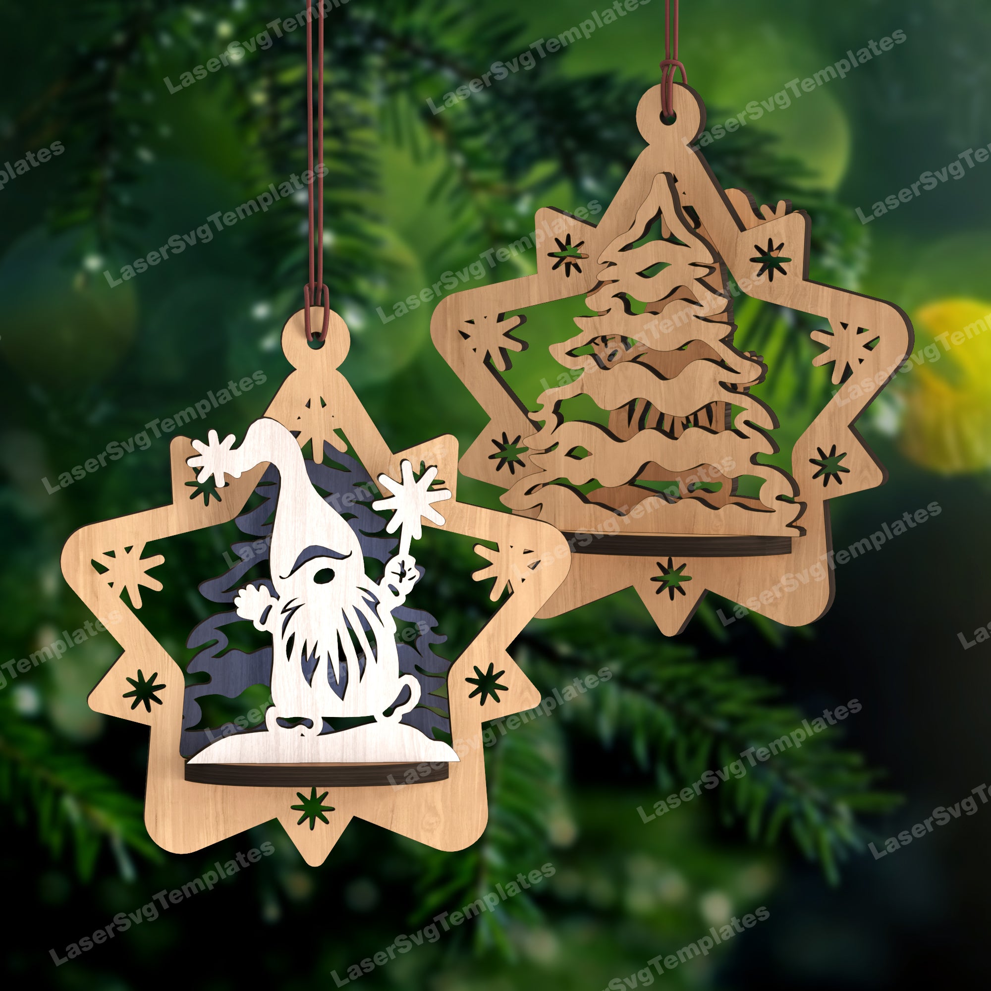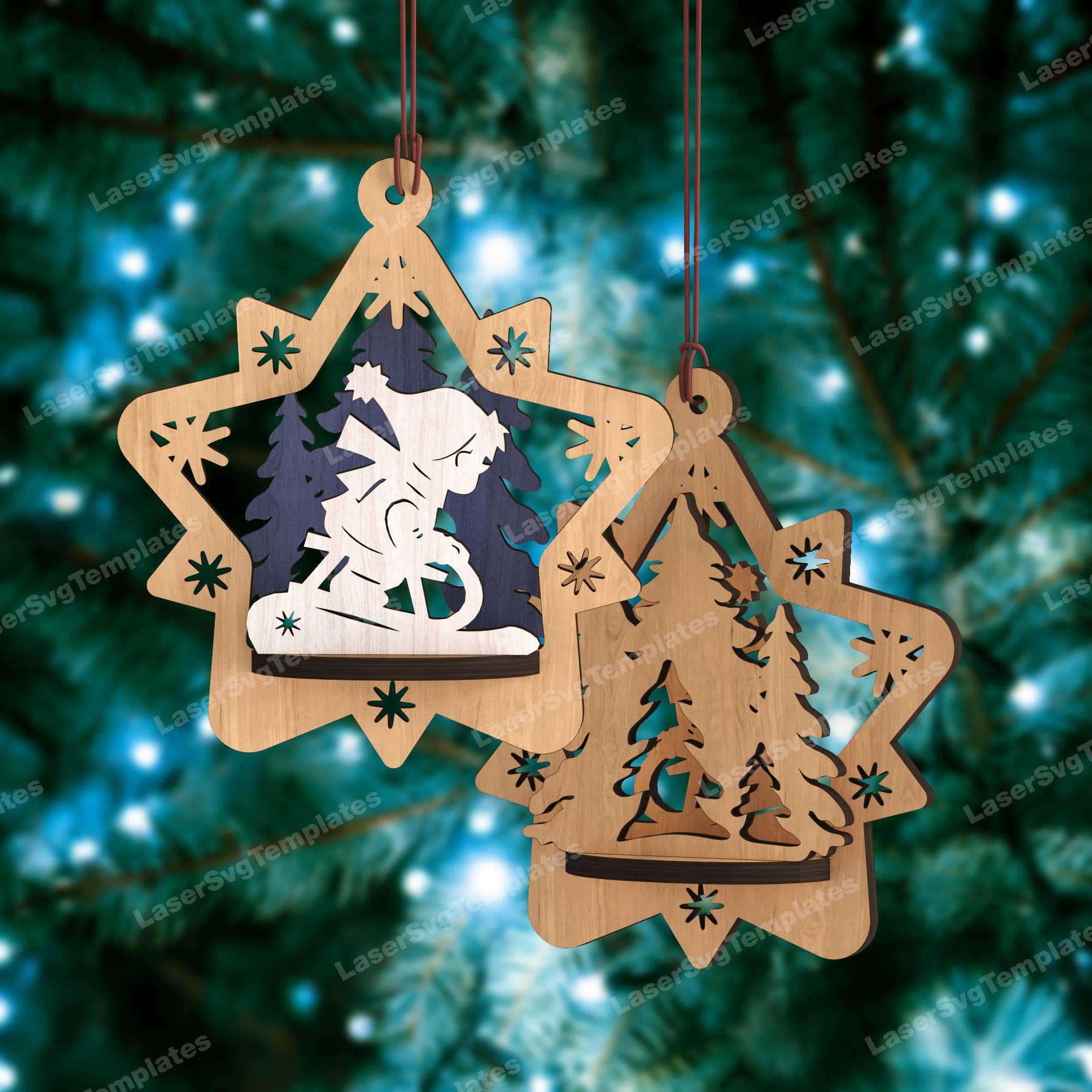 3D Christmas ornaments star bundle svg laser cut file