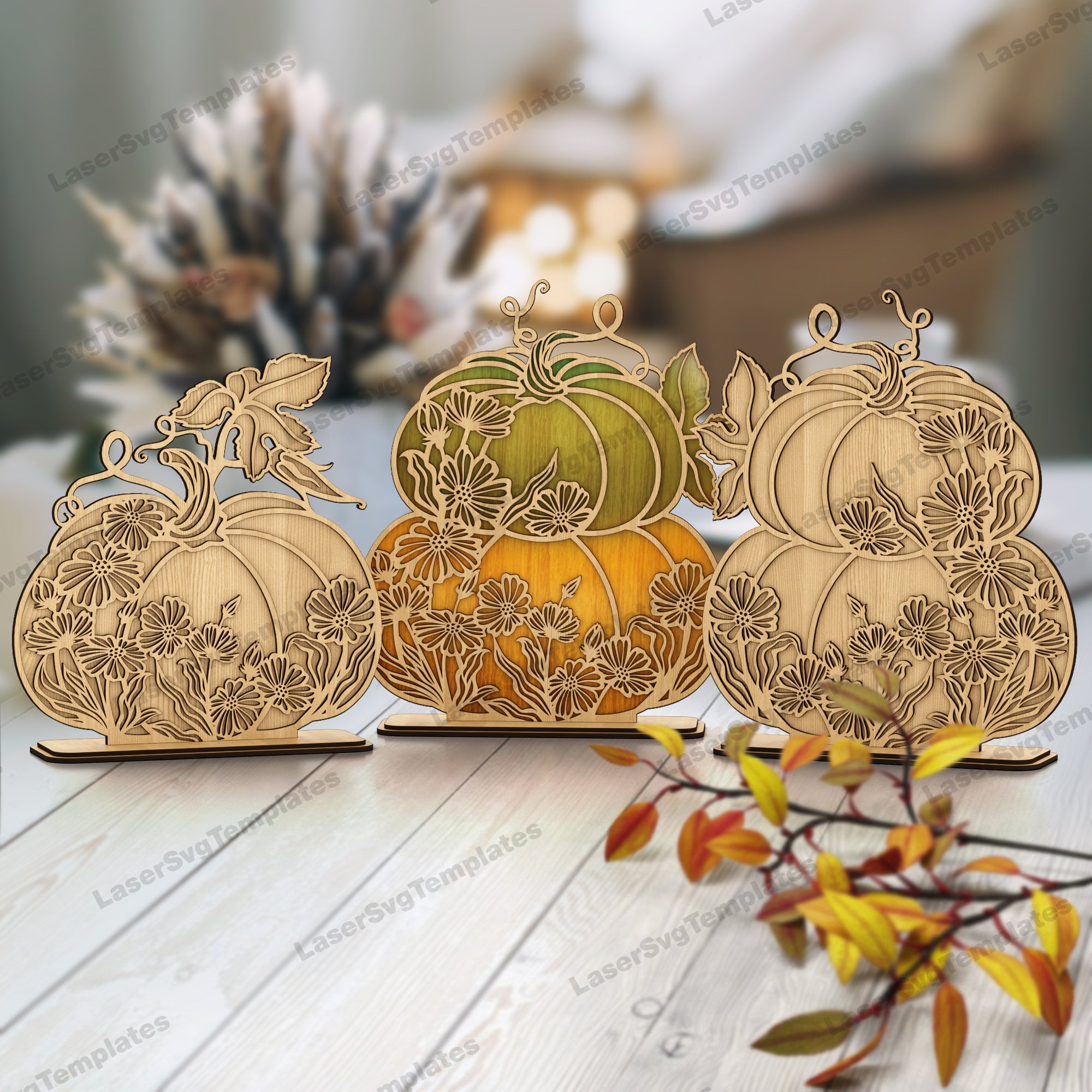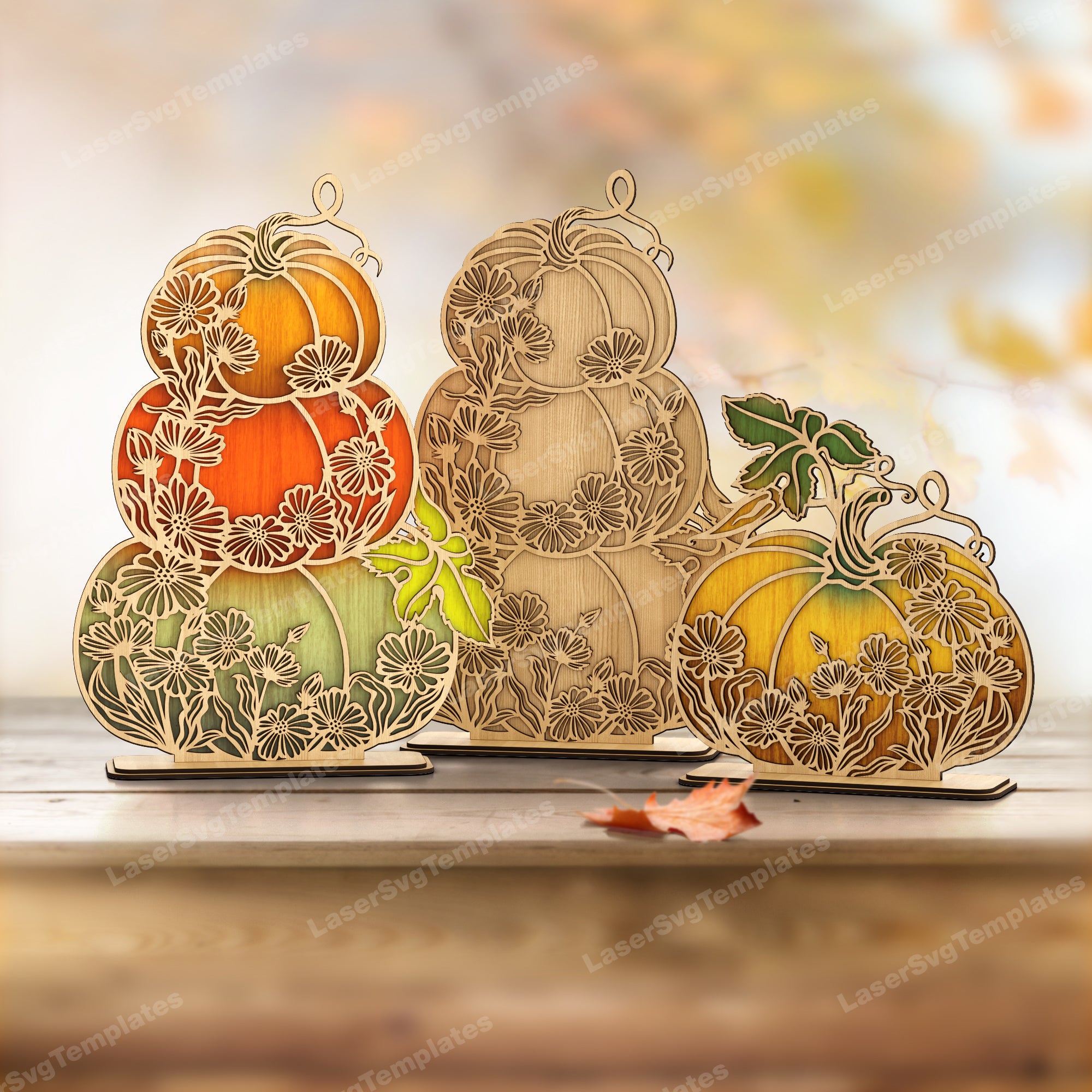 — Laser cut Stacked Floral Pumpkin table decoration svg file