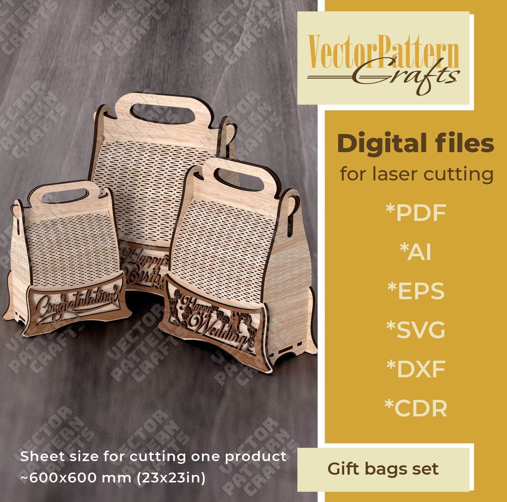 You will receive SVG, DXF, AI, EPS, CDR and PDF files, compatible with most laser cutting software.