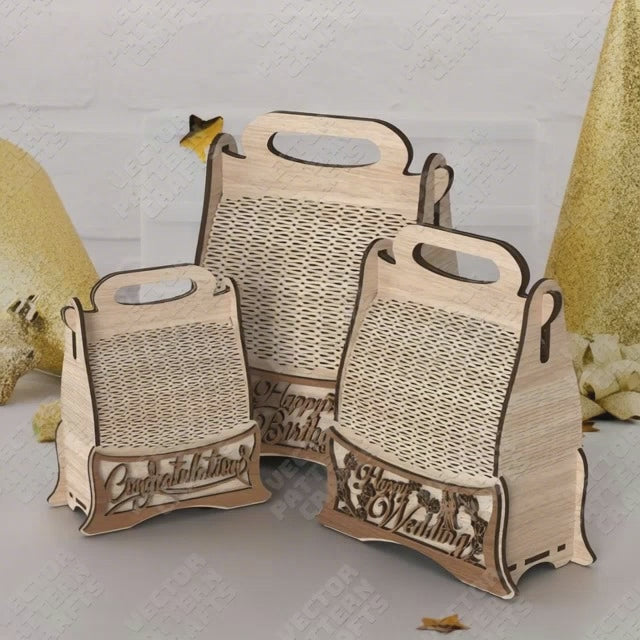 Wooden gift package box 3 set laser cut svg file