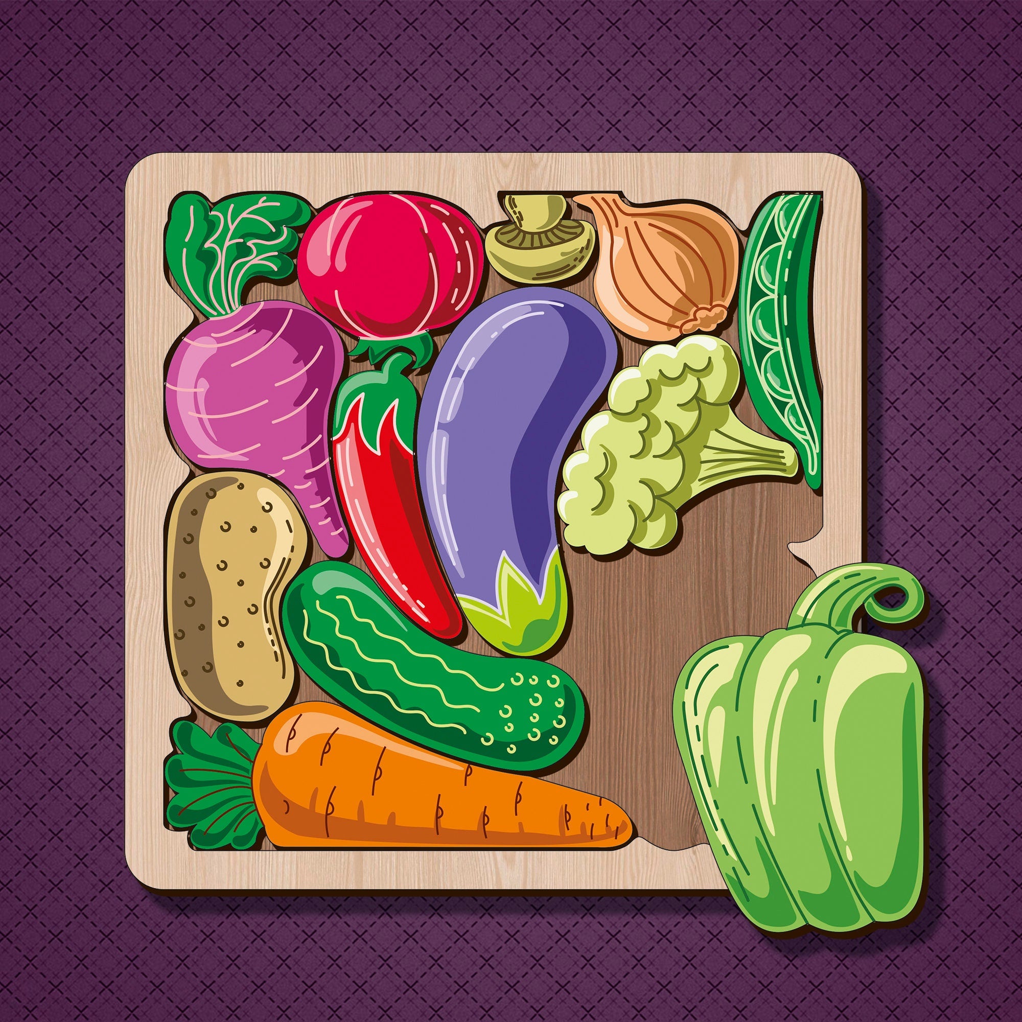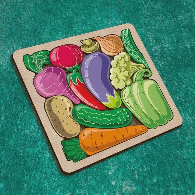 Wooden educational puzzle vegetables laser cut svg file