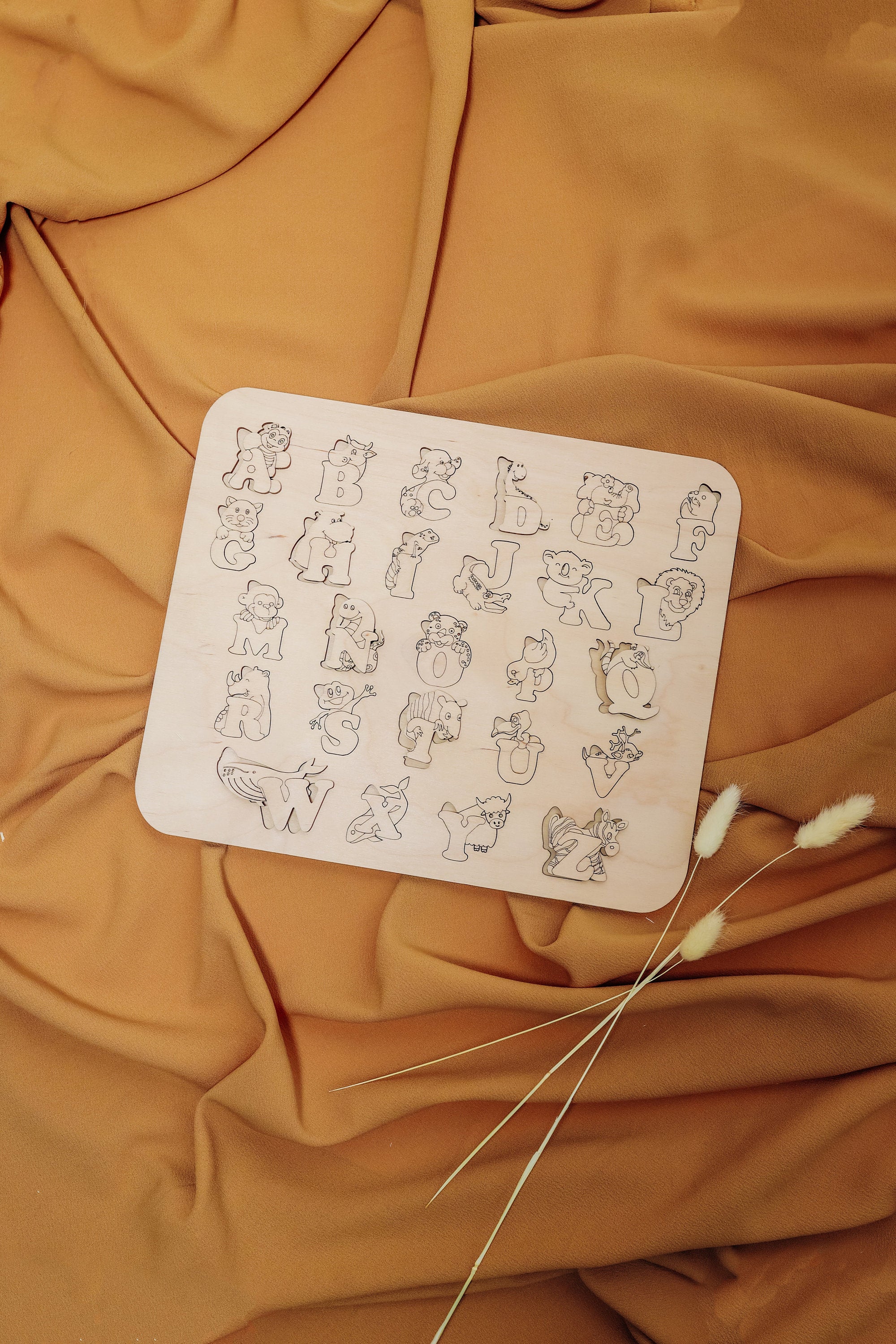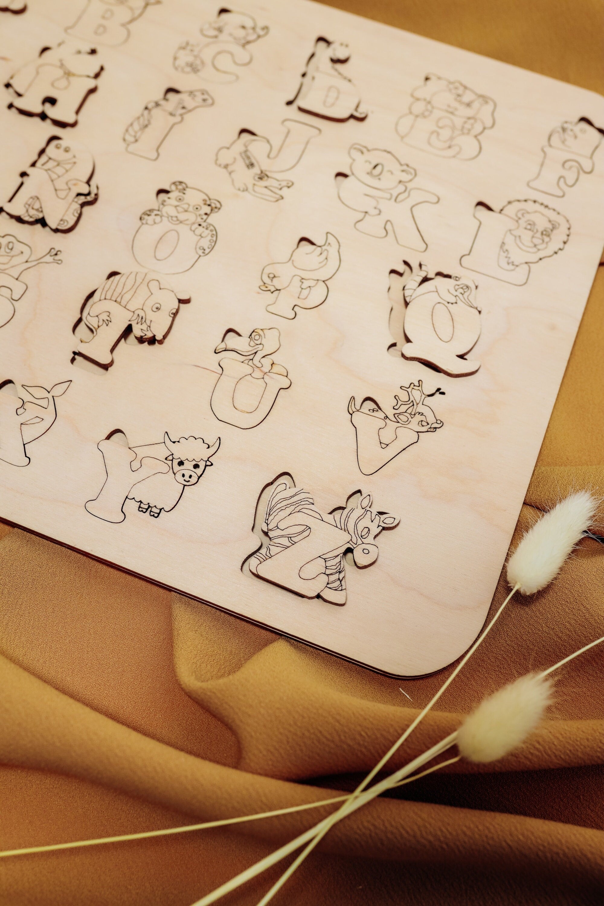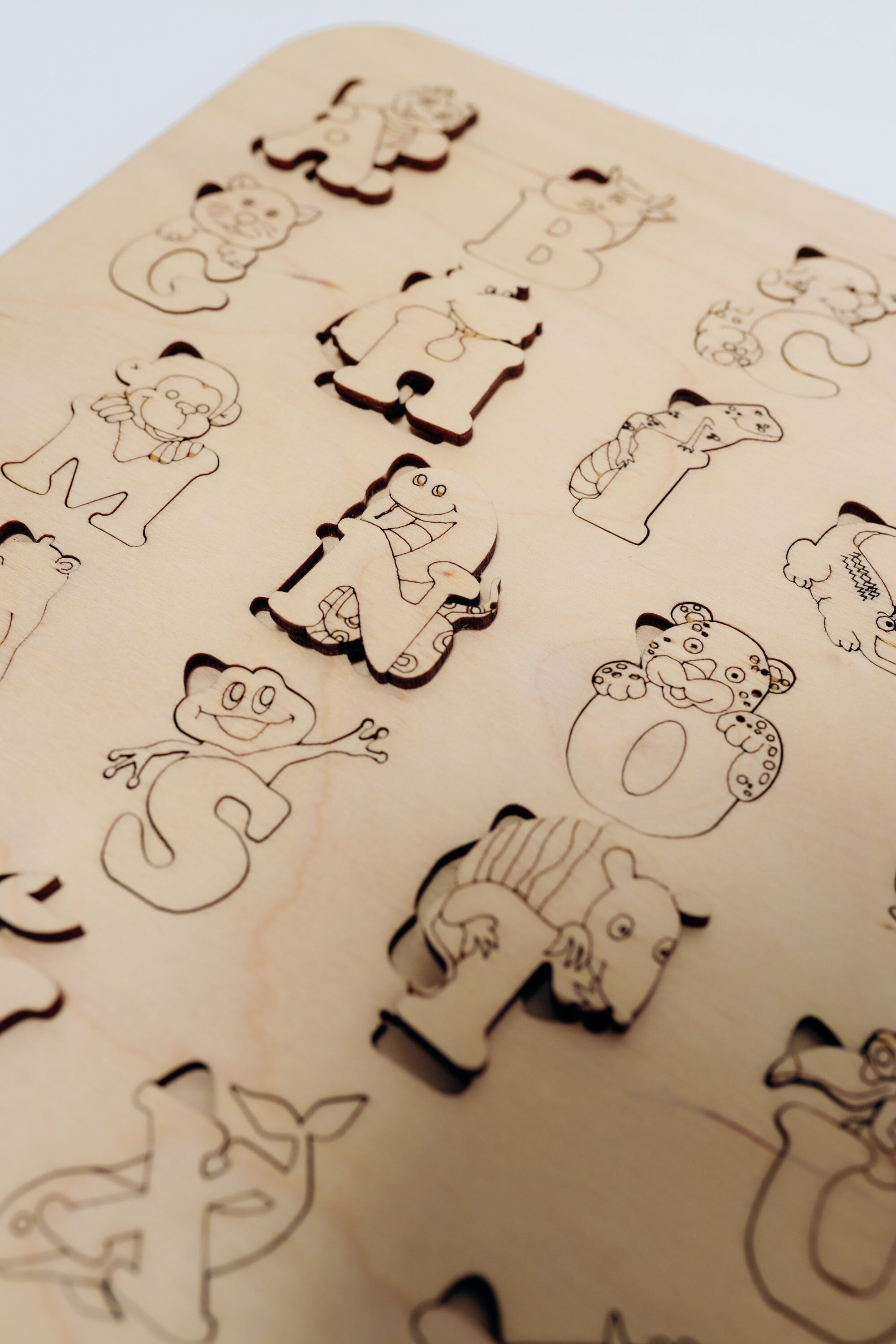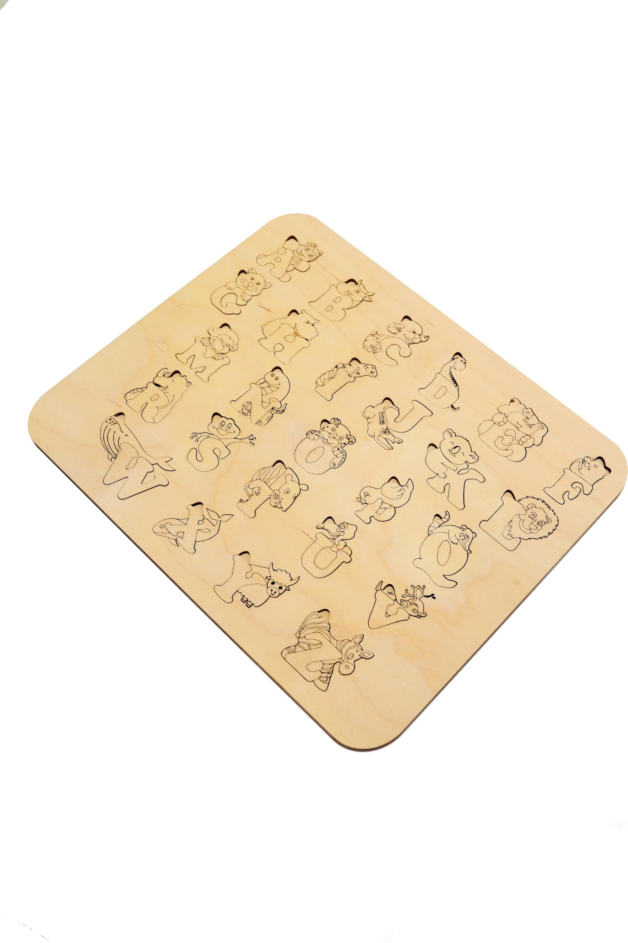 Educational kids animals alphabet letters puzzle laser cut svg file